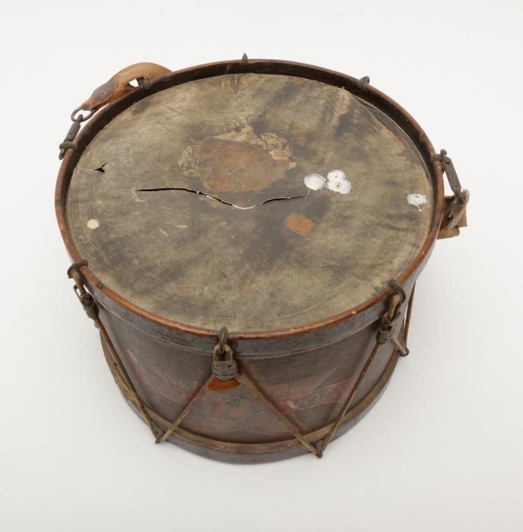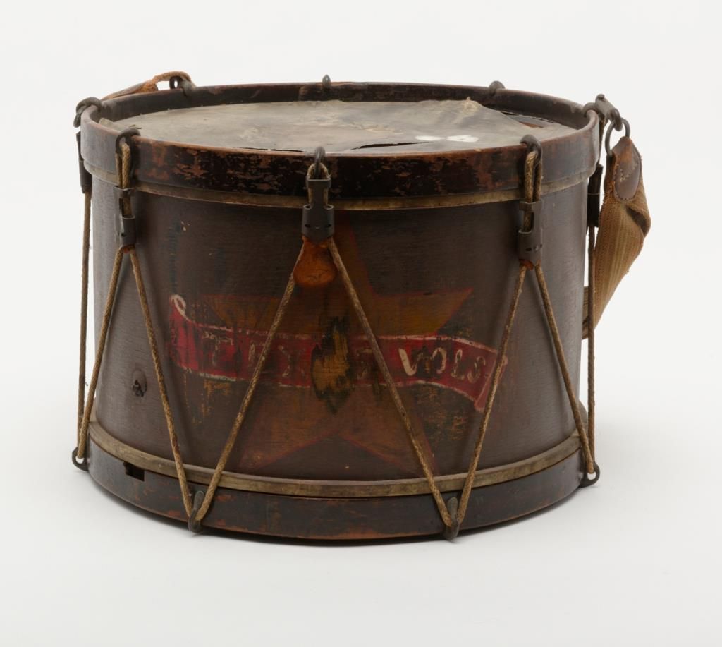 19th-century drum painted with Texas star and Texas volunteers from the collection of Jack Dutton noted Texas collector to the collection of William A. Gary. The drum heads are broken and the condition is somewhat rough showing repairs and a great deal of use. The drum measures approximately in height by 17 inches across the head. Bill Gary collection inventory card lists the drum as Confederate but it may have been post-civil war and used for reunions. Thecollection of William A. Gary consigned from his estate. Est.: $750-$1500
