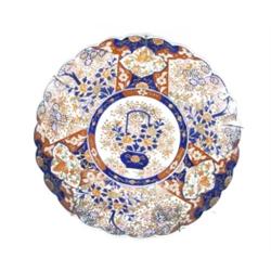 19th century fluted Japanese Imari charger, hand painted with panels of flowers and central basket panel, 40cm diameter