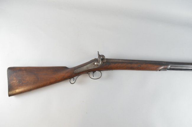 19th century percussion cap rifle by Martin of London, with ram rod, 52" long