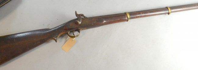 19th century percussion muzzle loading rifle, 54" overall, butt stamped 1602