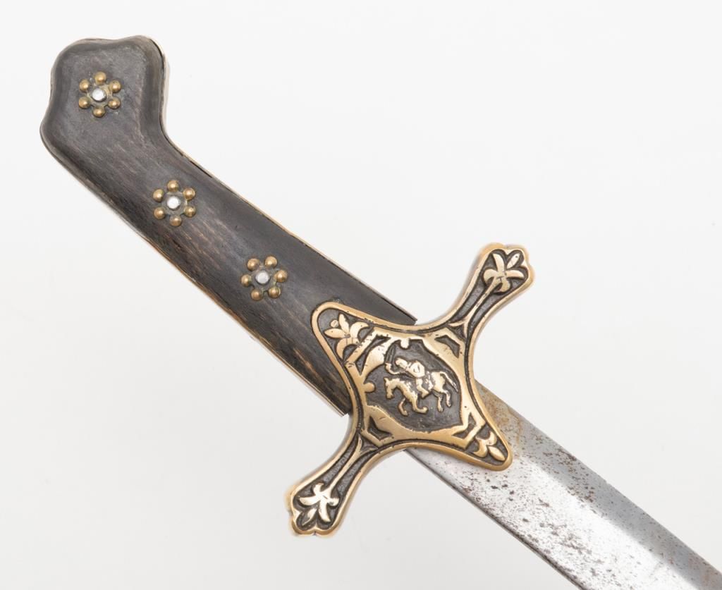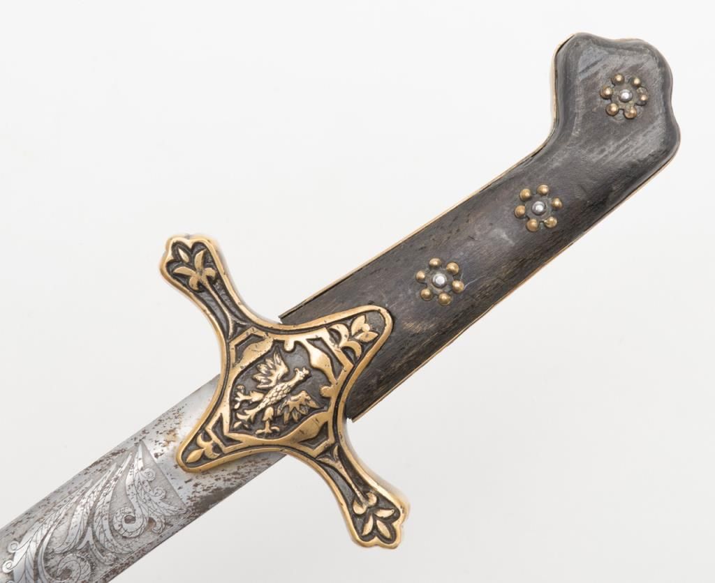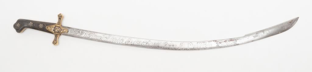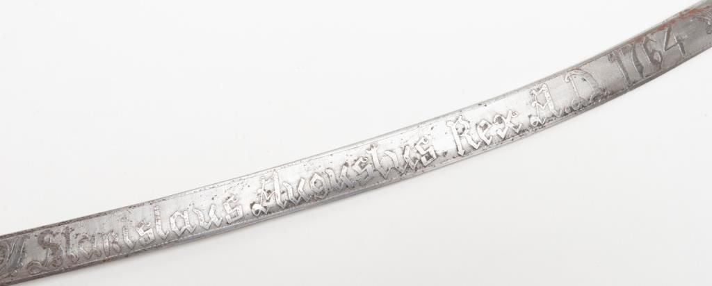 19th to 20th century copy of famous Russian sword with nicely etched inlay reading “Stanislaus Augustus Rex” and the year “1764”. The condition is good with some pitting and aging. Est.: $250-$500
