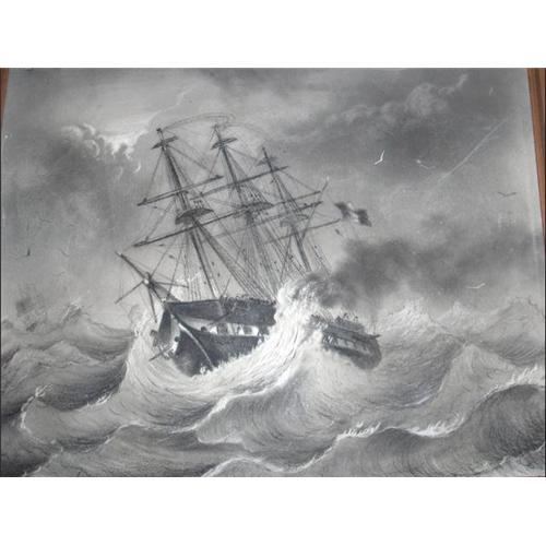 A stunning pencil drawing by the listed French Seascape Artist JEAN FLEURY 1845-1898 Cherbourg France.Capturing a vessel caught in a stormy sea of the Northern French Coast,Monogram JF bottom left ,a work of extreme quality and offered framed ,glazed and perfect.