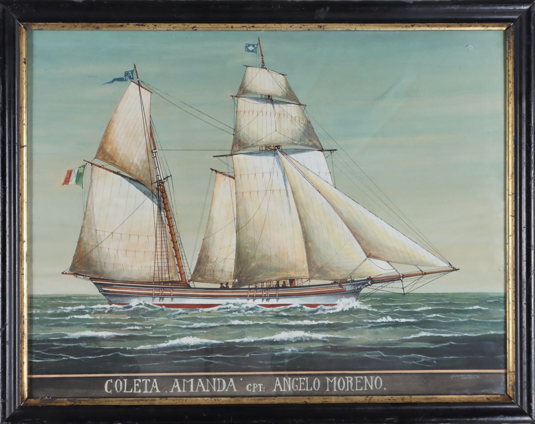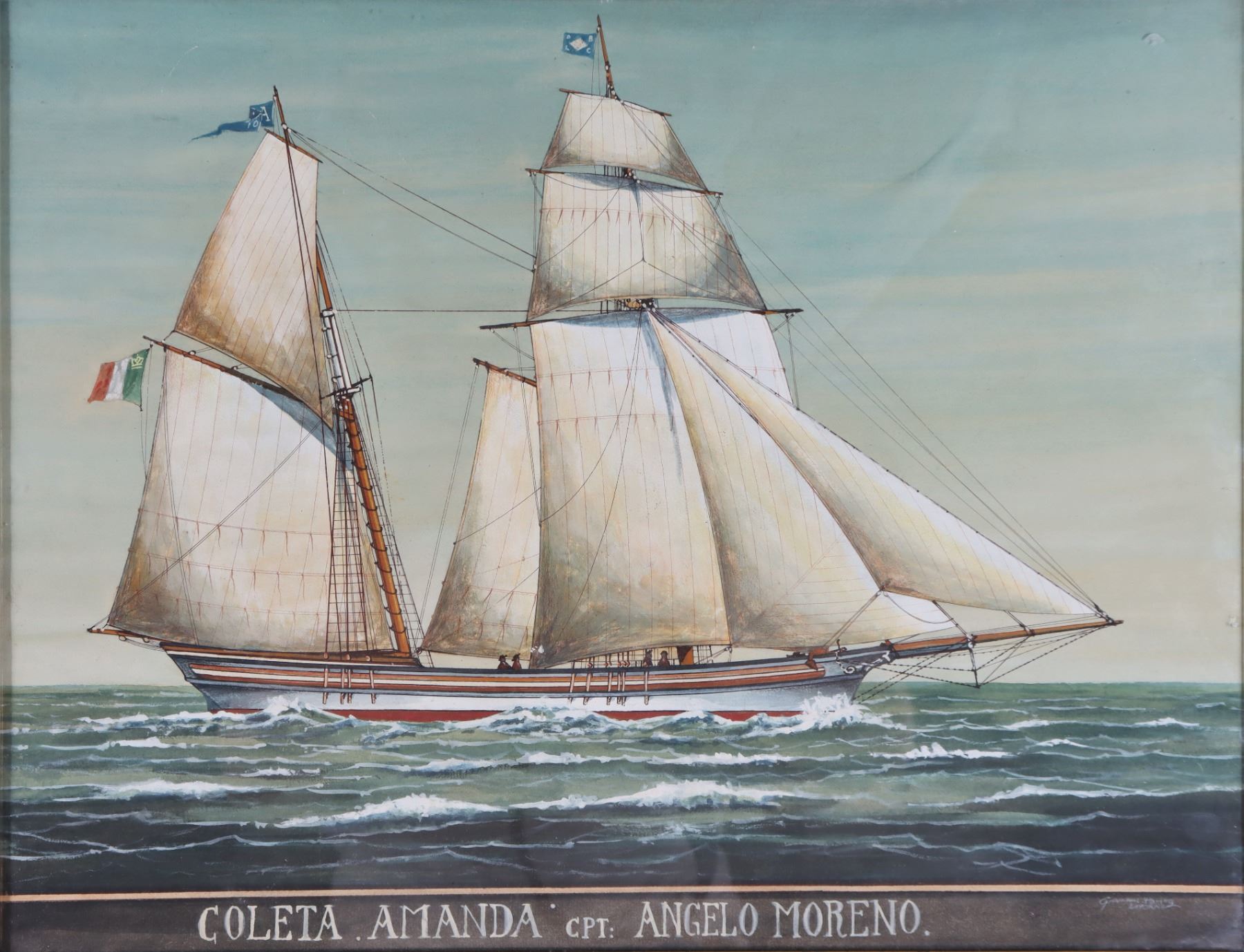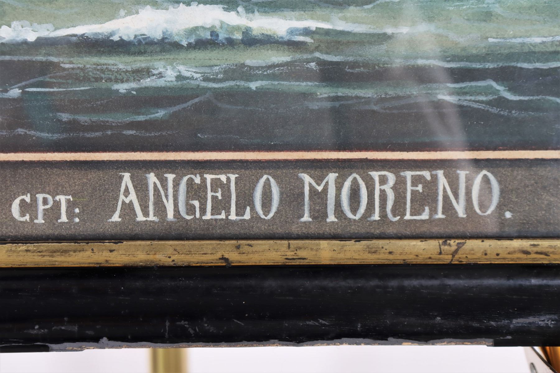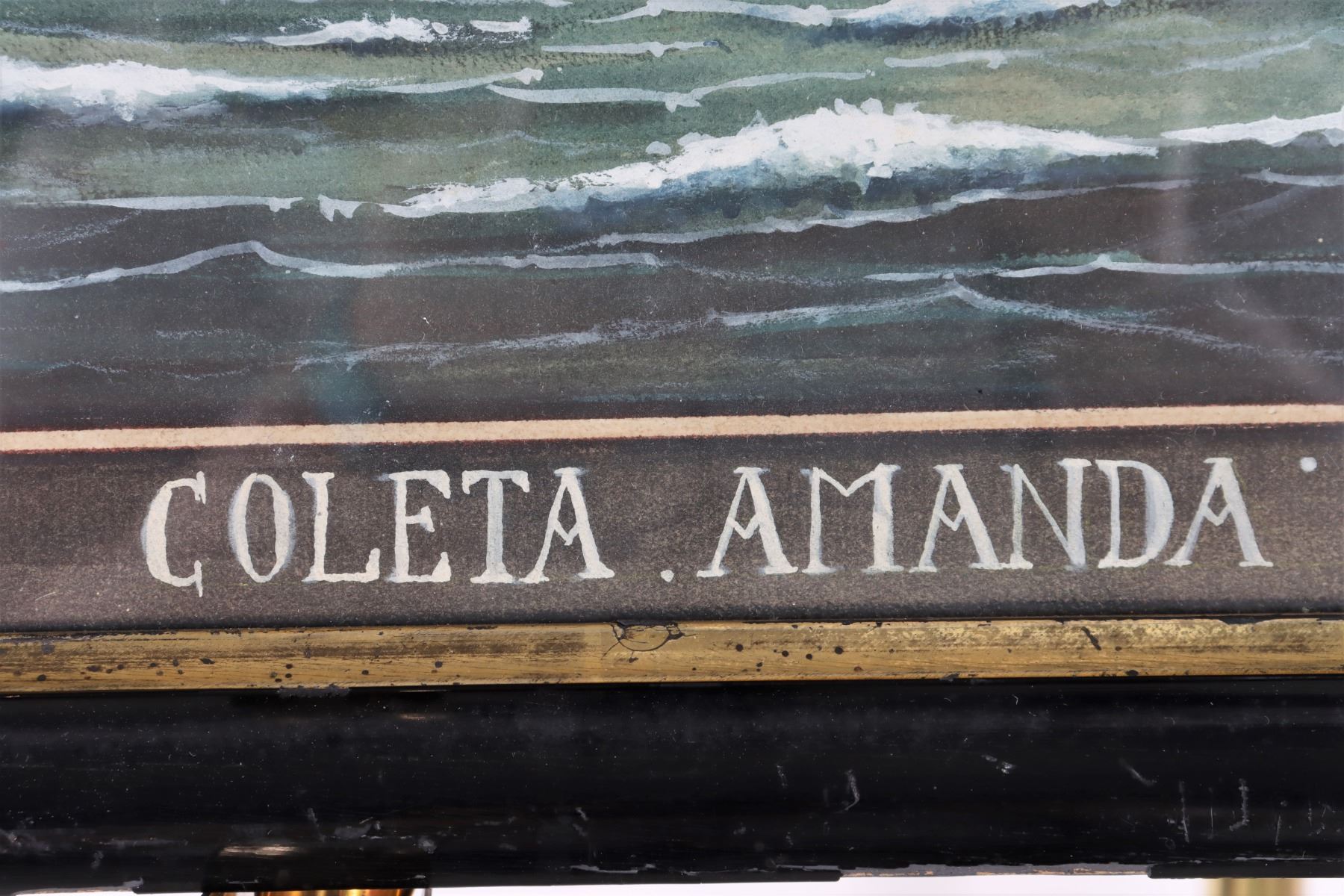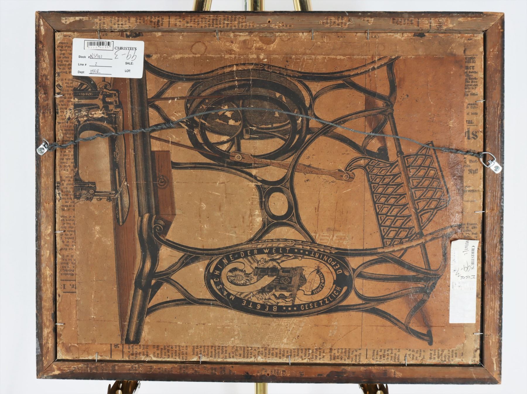 Coleta, Amanda cpt: Angelo Moreno, gouache on paperboard, signed lower right: Giovanni Pa--?, Livorno, framed under glass. With printed image of a treadle sewing machine on back.
