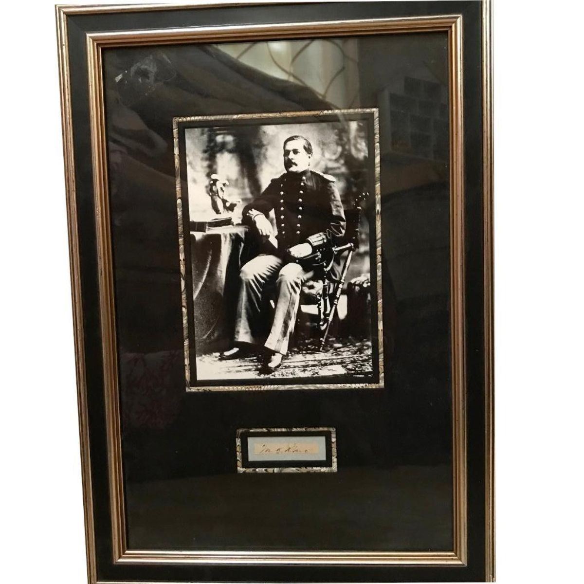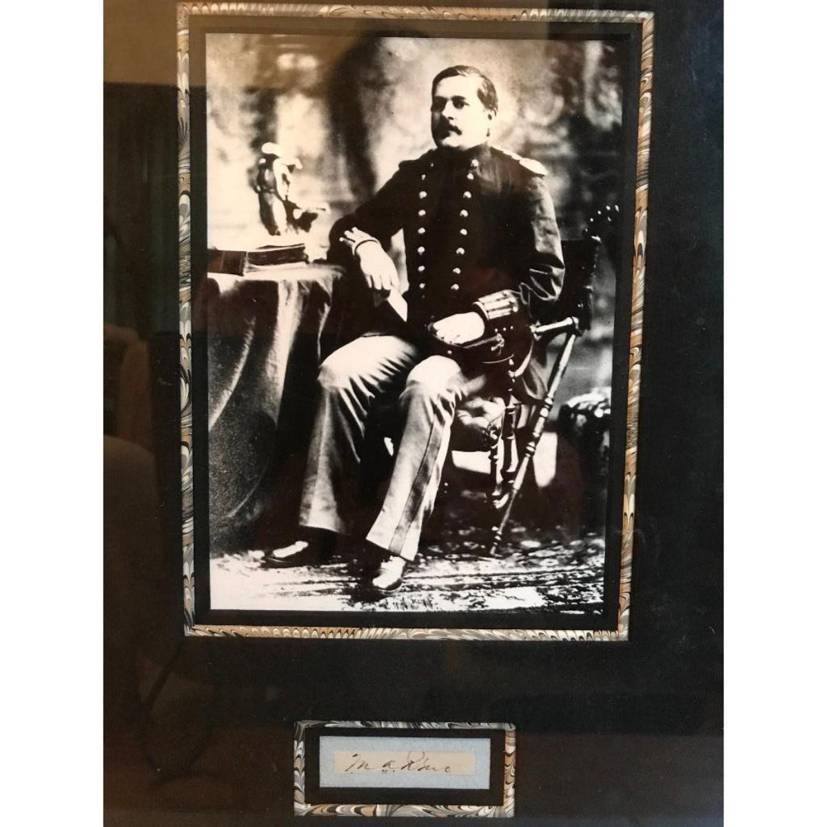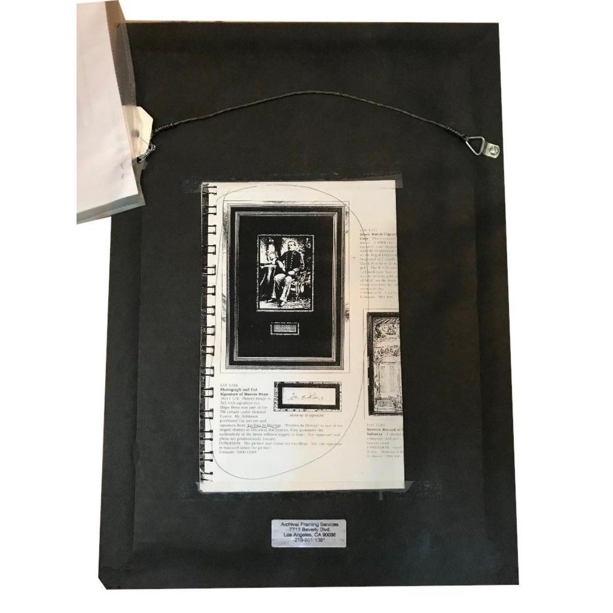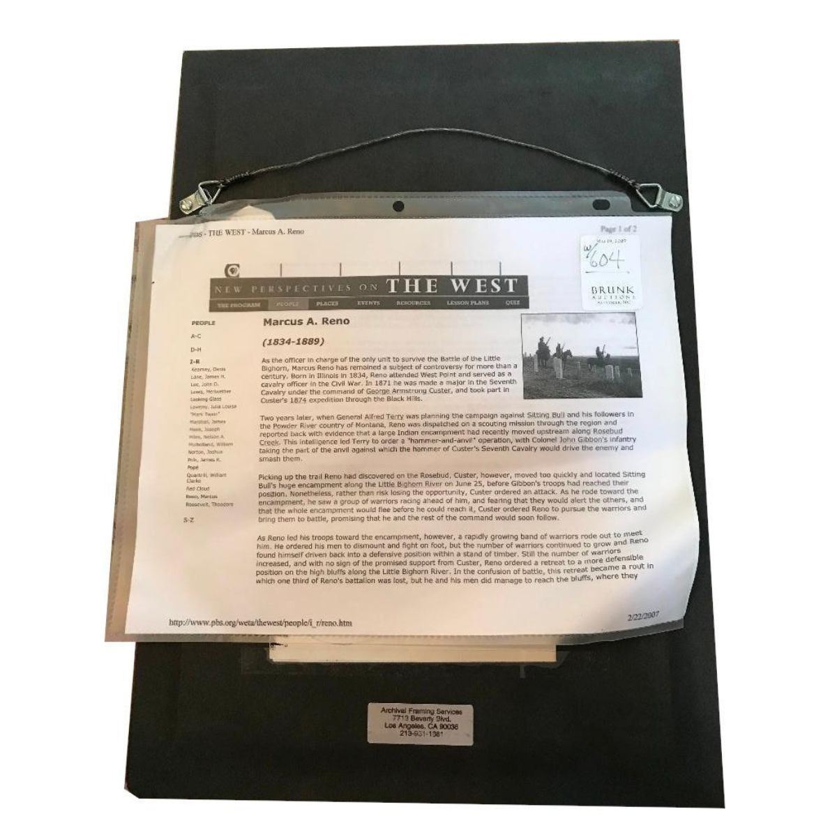 Clipped Signature, “M.A. Reno,†on a small piece of paper, no date, no place, along with a black & white photo of Major Reno seated. Very fine condition, with provenance stating that the piece was originally purchased from "Profiles In History", one of the largest dealers in historical documents. Comes with additional biography of Major Reno attached & auction stickers from a previous sale in 2007, as well as an attached sheet showing another previous auction where its value was estimatedbetween $5000 & $6500. The current consignor of this piece is liquidating his collection. Showcased in its original 11" X 16" archival frame.