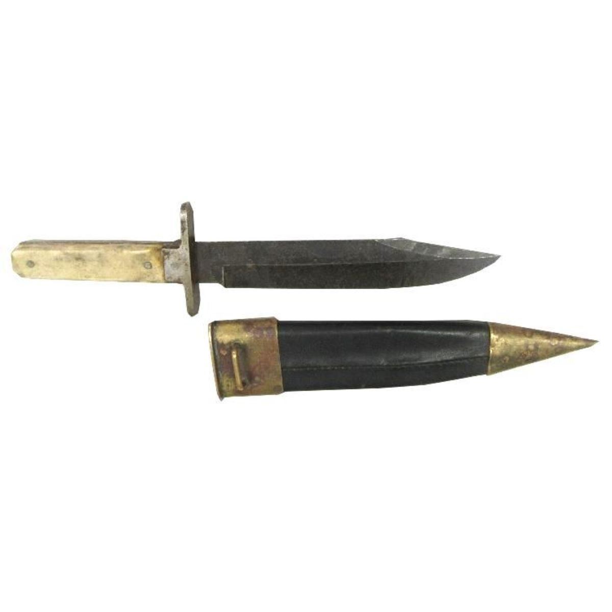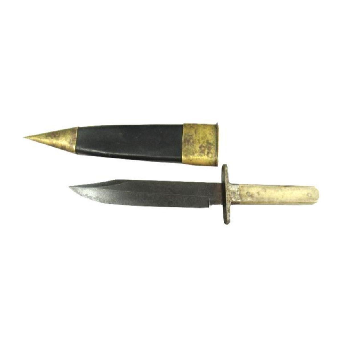 19thc bone handle knife, with leather & brass belt loop sheath. 11 3/4" overall length. 6" blade. * some loss to leather sheath on one side & some rust to the blade at top. - 9093-012018-IN-00023