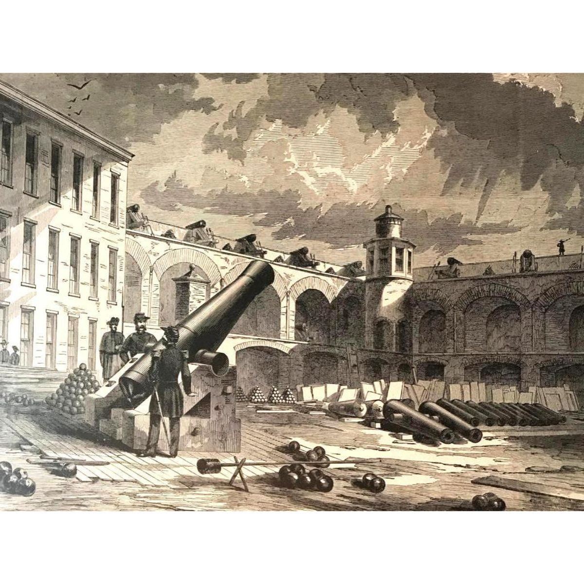 19thc Civil War Engraving, Interior, Mortar, Fort Sumter, Charleston