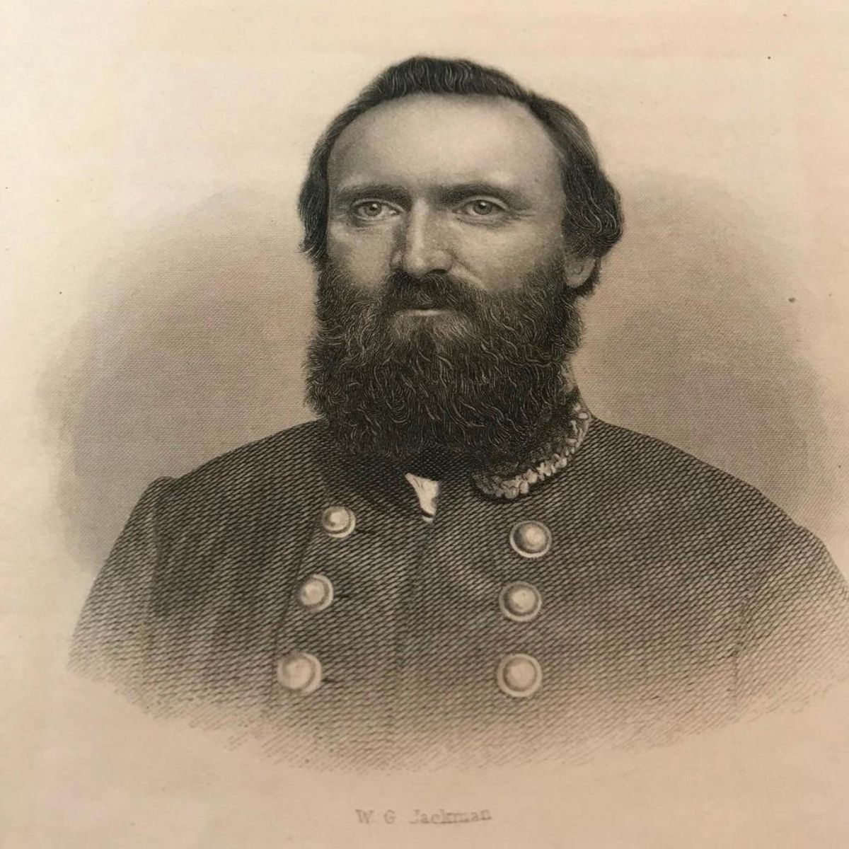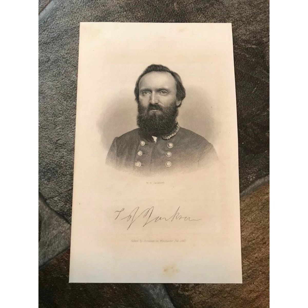 19th Century steel engraving print of Confederate General Thomas J. "Stonewall" Jackson, based on the Routzahn head & shoulders "button out of line" photograph. Engraving made by Jackman, W.G. & dated 1862. 4" X 7". * previously in frame & shows some toning & light foxing from age. Â
