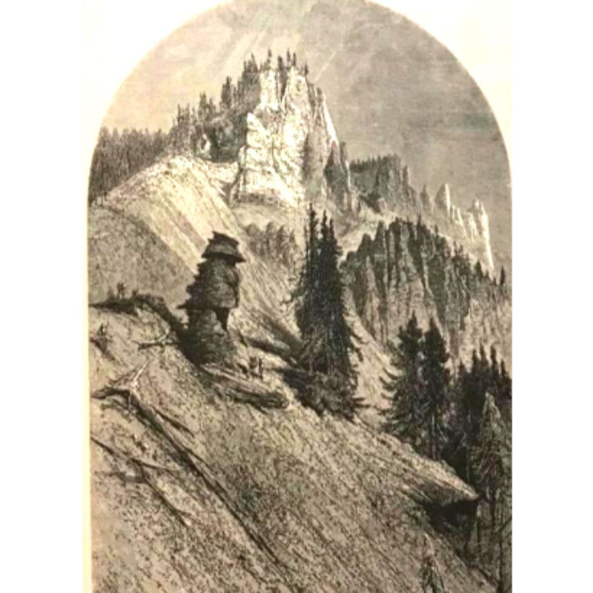Original black & white wood engraving from c.1872 bound volume, "Cliffs On The Yellowstone". 9" X 12".