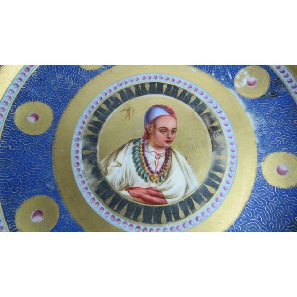 19thc German porcelain, portrait of a holy man, gilt mounted charger. 5" H X 12" D. 9657-030318-LA-00726