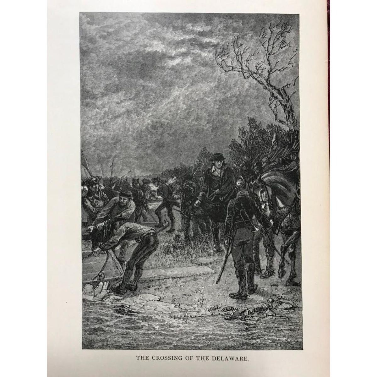 1879 wood cut engraving of General George Washington, "The Crossing Of The Delaware" book plate print, from an antique history book. 6" X 9 3/4" page size. 5" X 7 1/2" print area size.