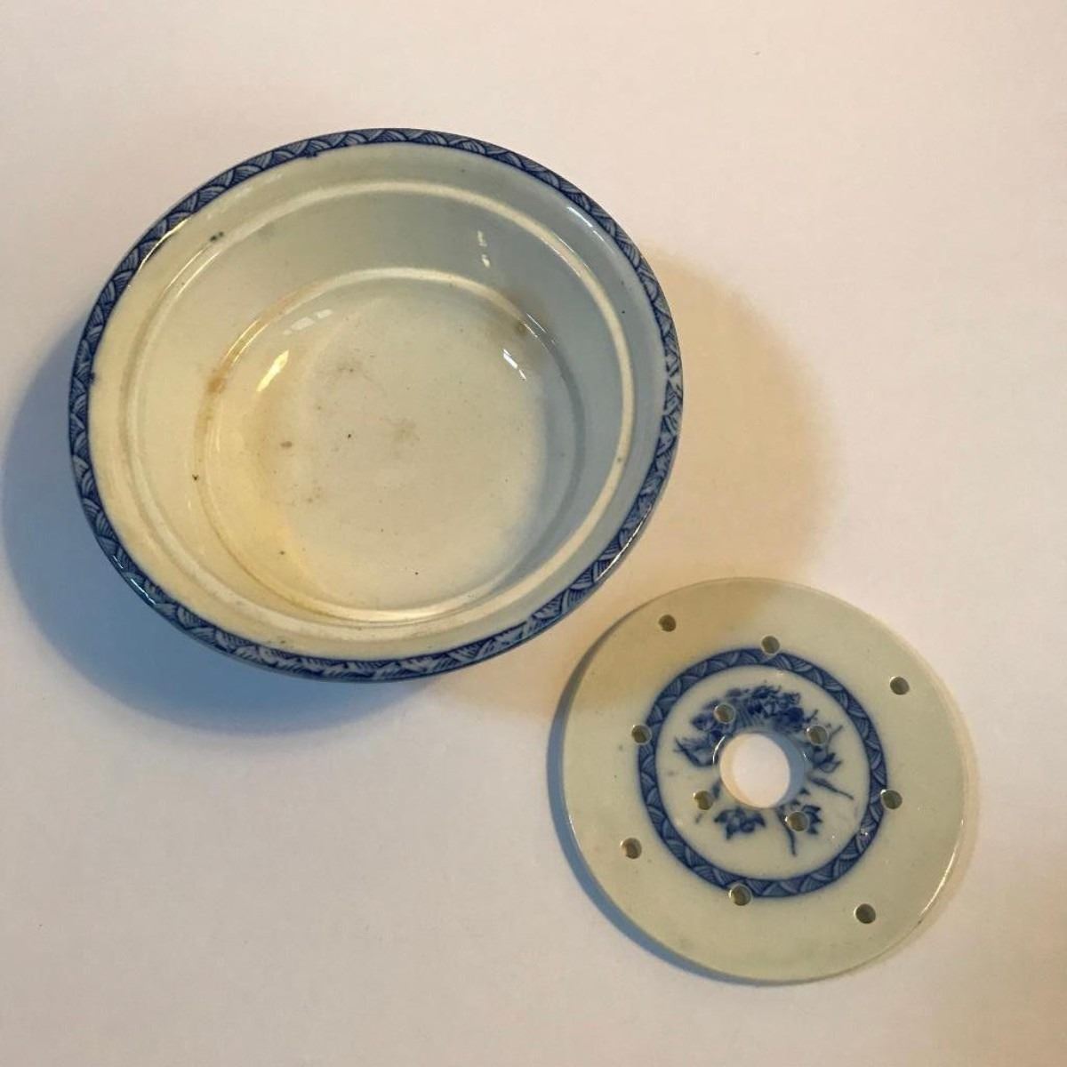 19th Century flow blue floral pattern two piece flower frog. 6 1/4" D.