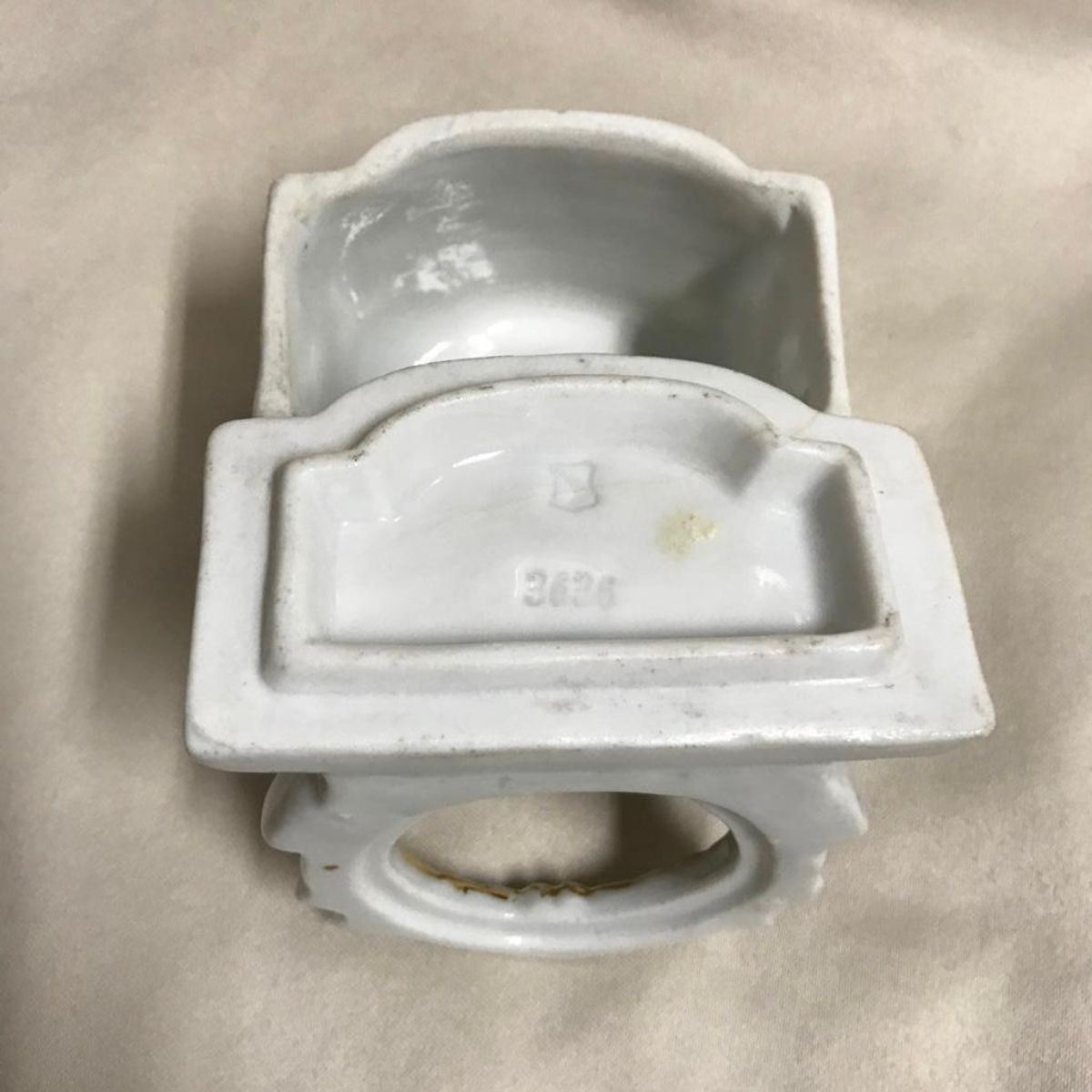 19thc German Victorian porcelain fairing trinket box, little boy with pink hat & kitty cat atop a dresser Vivid colors & most of gilt remaining. #3636 stamped inside, along with Conta Boehme shield stamp. * hairline crack appears on inside of top piece. 3 1/4" W X 2 1/4" D X 4 1/2" H. * Fairing boxes were created as prices or rewards won or "fairly earned" at carnivals & fairs during Victorian times.Â