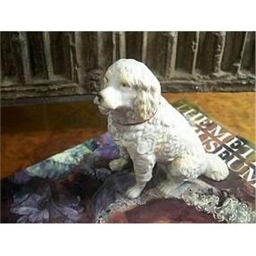 Offered here is a fine little bisque dog that was made in Europe probably around 1900. The dog is white and has curly fur, similar to a poodle but I don't think that is what it is. There are no flaws that are not in the making. The figure is 4" in height and about 4" front to back as he sits.