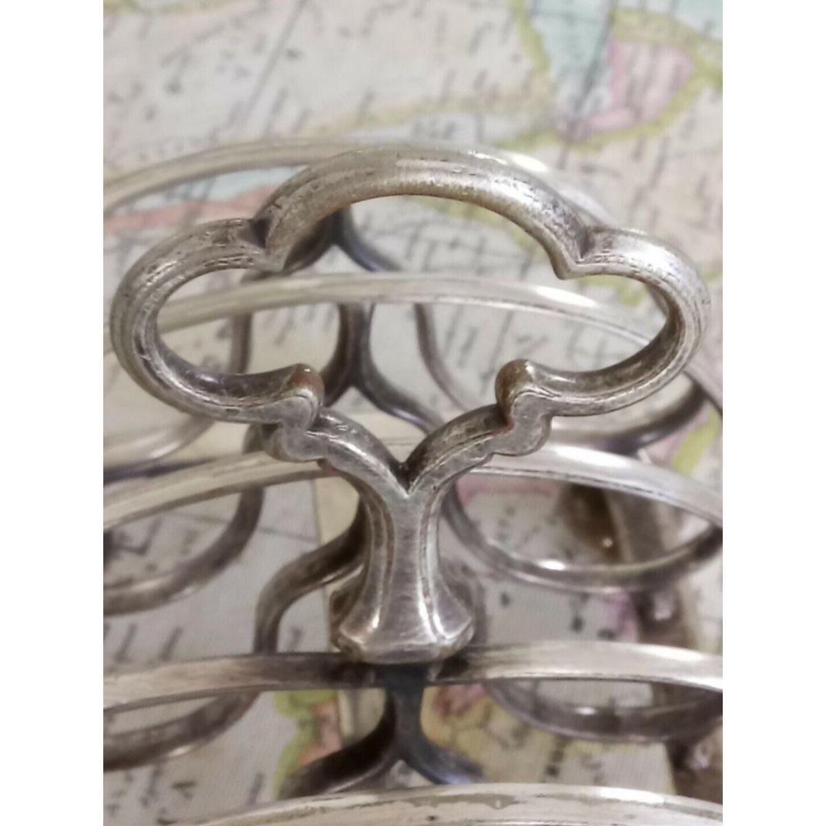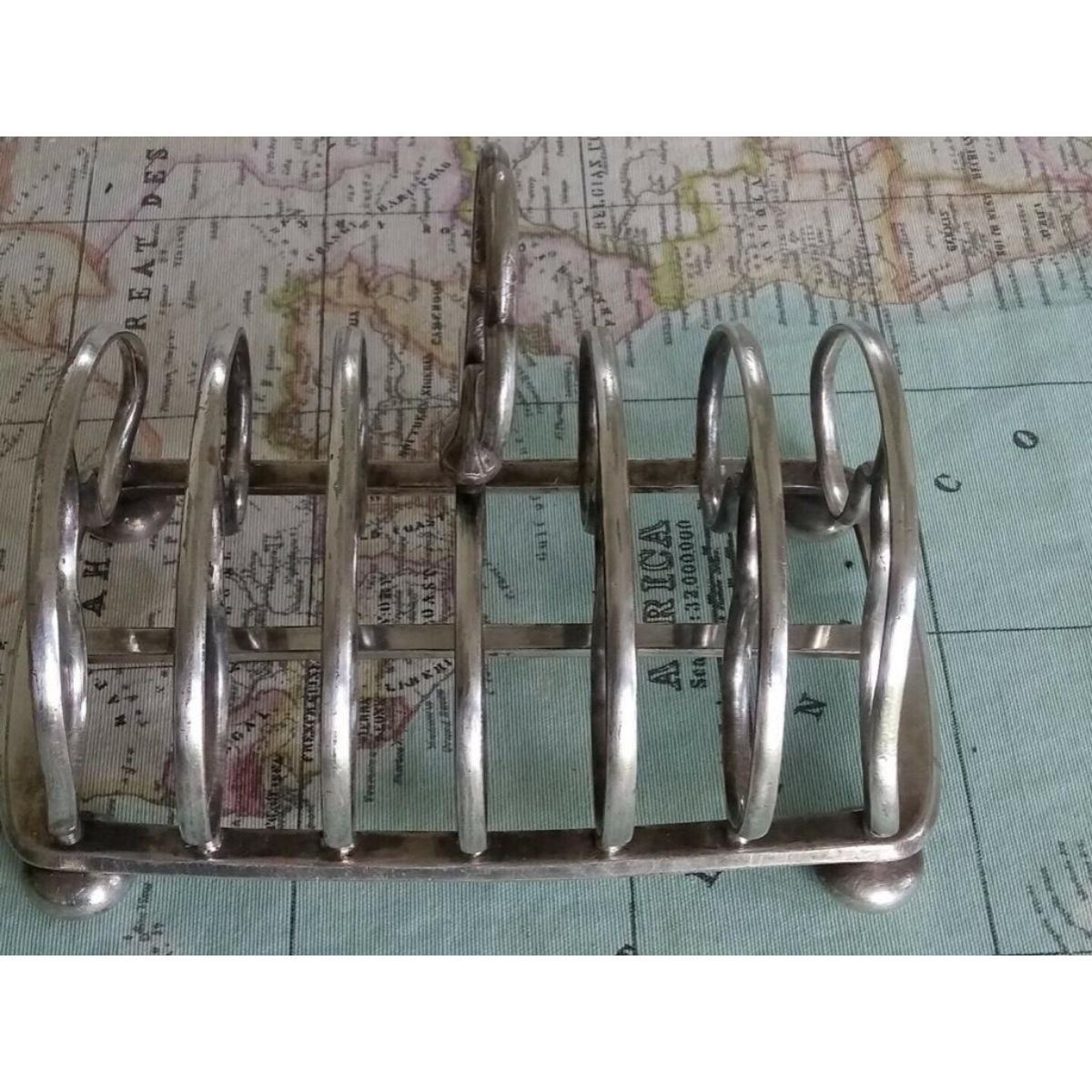 c.1859Â Elkington & Company English silver-plate Victorian Gothic style 6 slice toast rack with proper markings, per photos. Stamped # 2053.