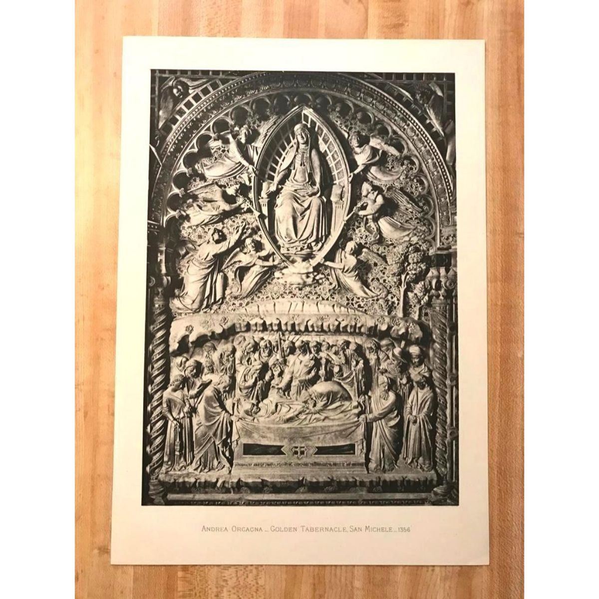 19th Century lithograph, Golden Tabernacle, San Michele, 1356. The Dormition & Assumption of the Virgin. Architectural detail in black & white. 9" X 12 1/2".