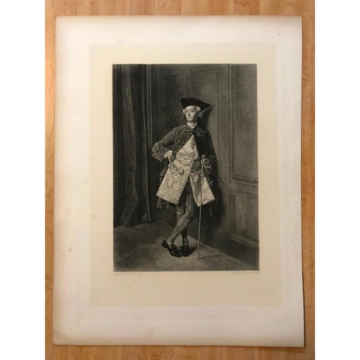 19thc photogravure engraving, from an 1882 edition of Etudes in Modern French Art. Waiting An Audience, drawn by - J.L.E.MEISSONIER, engraved by C.CAREY. 9 1/2" X 12 1/2". Â