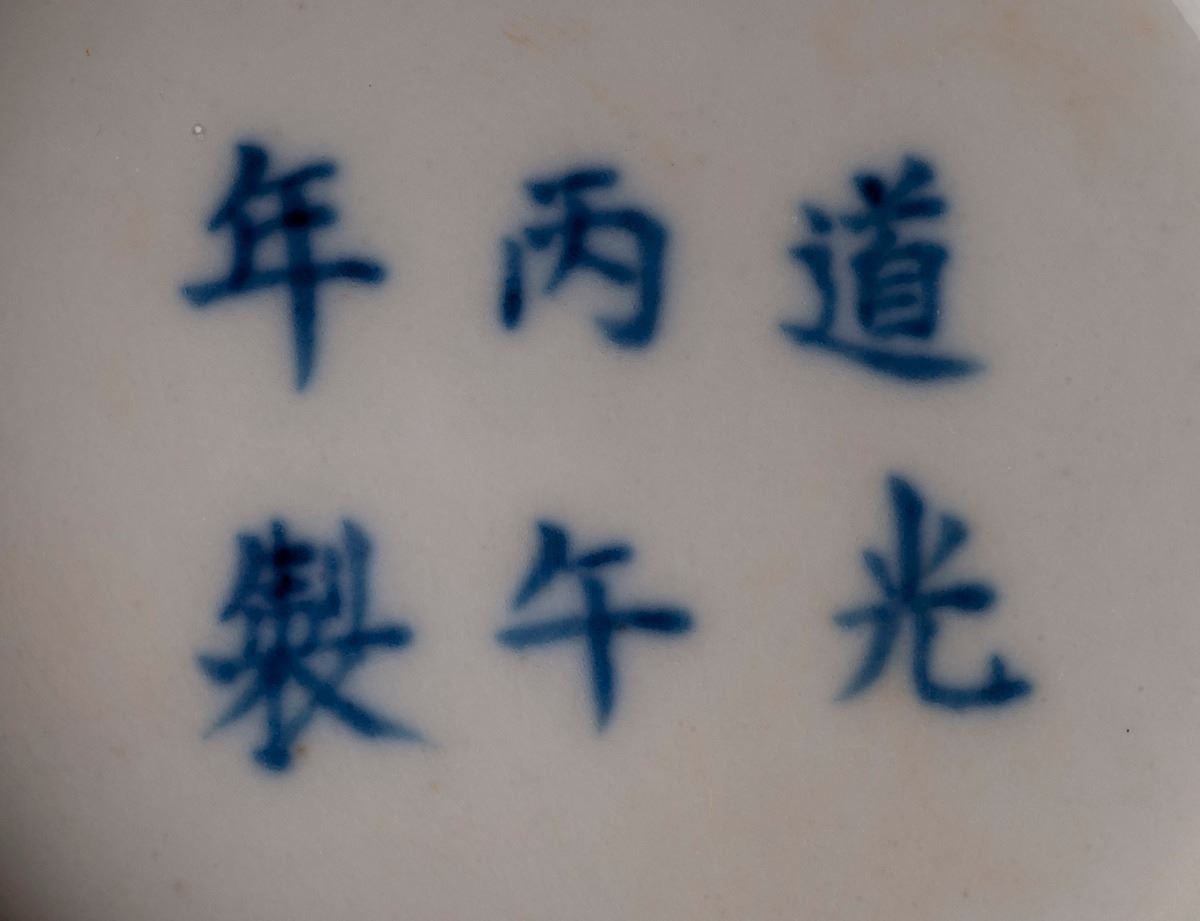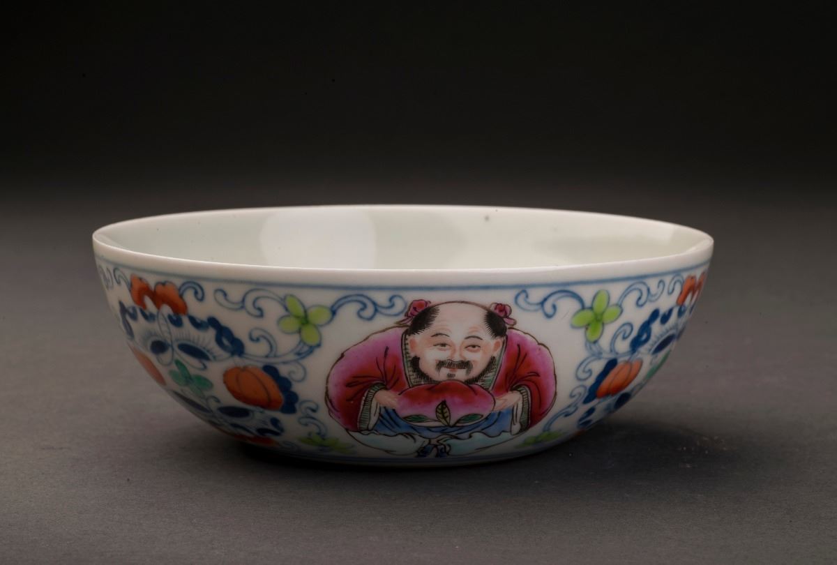 A Delicate Design Of Porcelain Wash Pot. Painted With Features Of People Holding Big Peach, Amidst With Butterfly Patterns. With Six Chinese-character Marks On The Bottom, Daoguang(1821-1850).