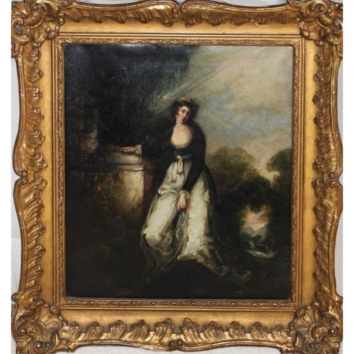 Romantic period ( circa 1800 - 1850 ) portrait, oil on board in original gold gilt frame. 16 1/2" X 12" frame measures: 14" X 18". * some damage to the antique frame, needing repair, as seen in photos. lowered reserve price reflects damage.