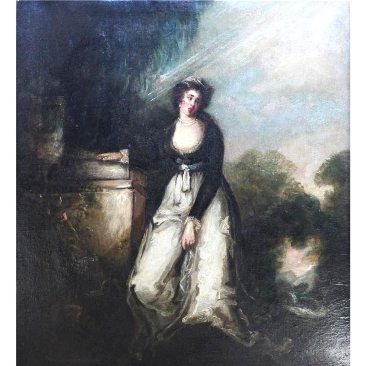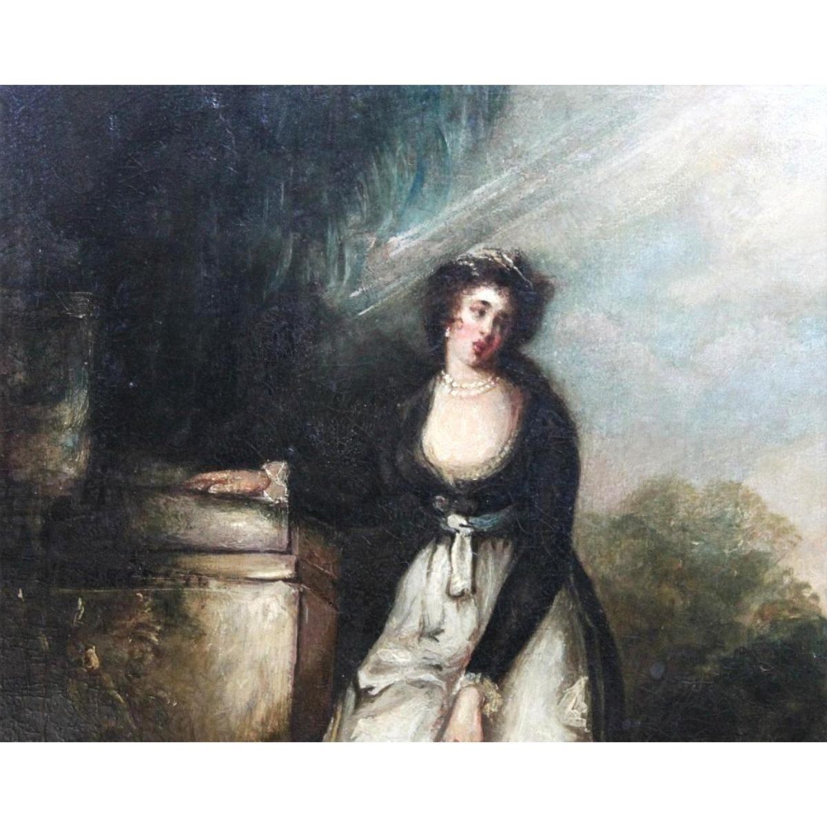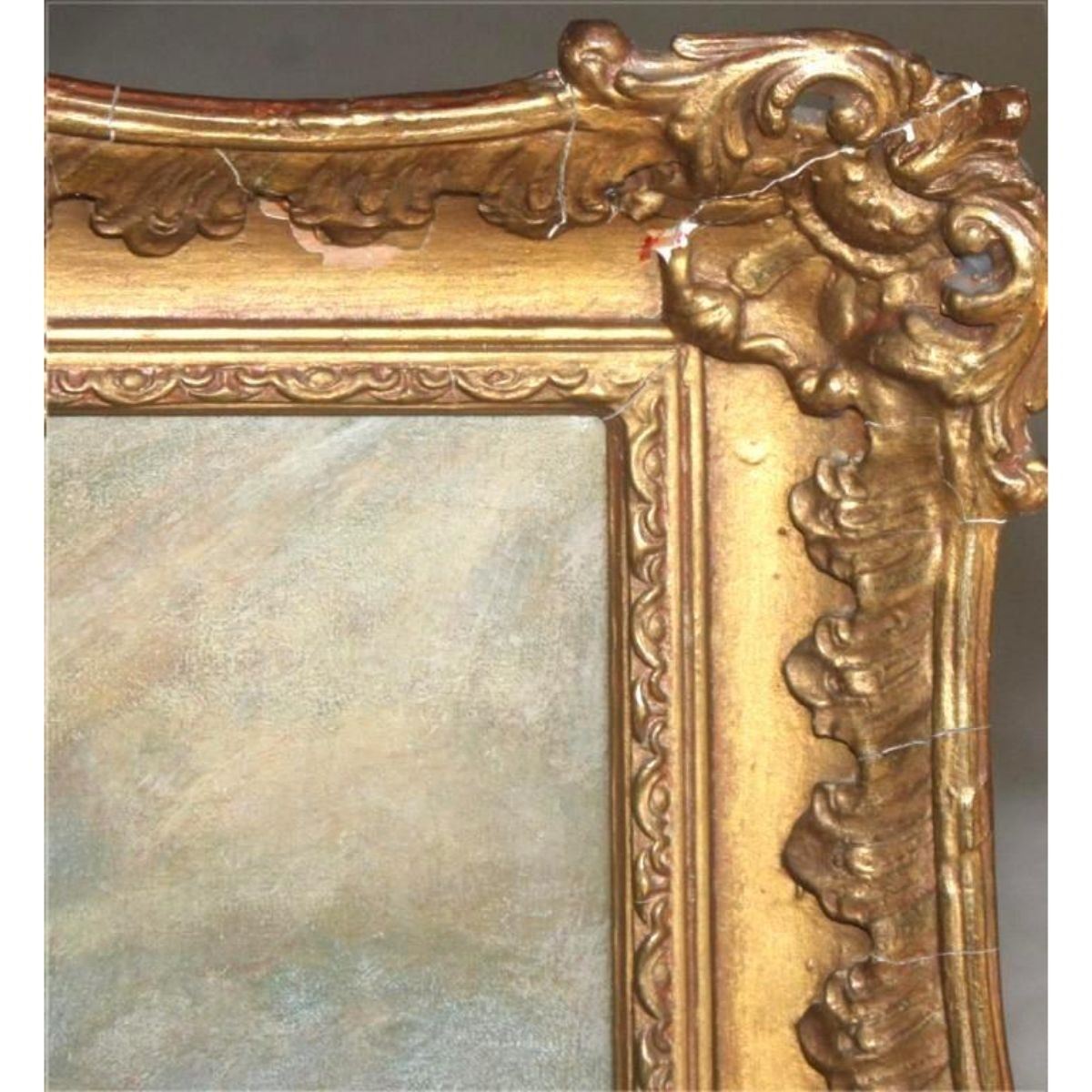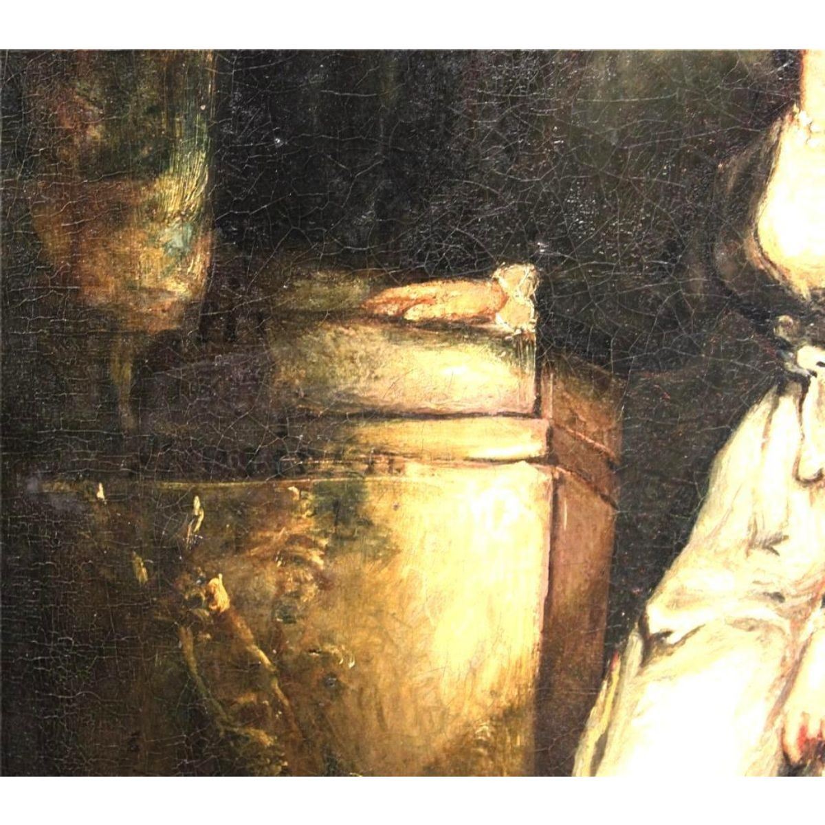 Romantic period ( circa 1800 - 1850 ) portrait, oil on board in original gold gilt frame. 16 1/2" X 12" frame measures: 14" X 18". * some damage to the antique frame, needing repair, as seen in photos. lowered reserve price reflects damage.