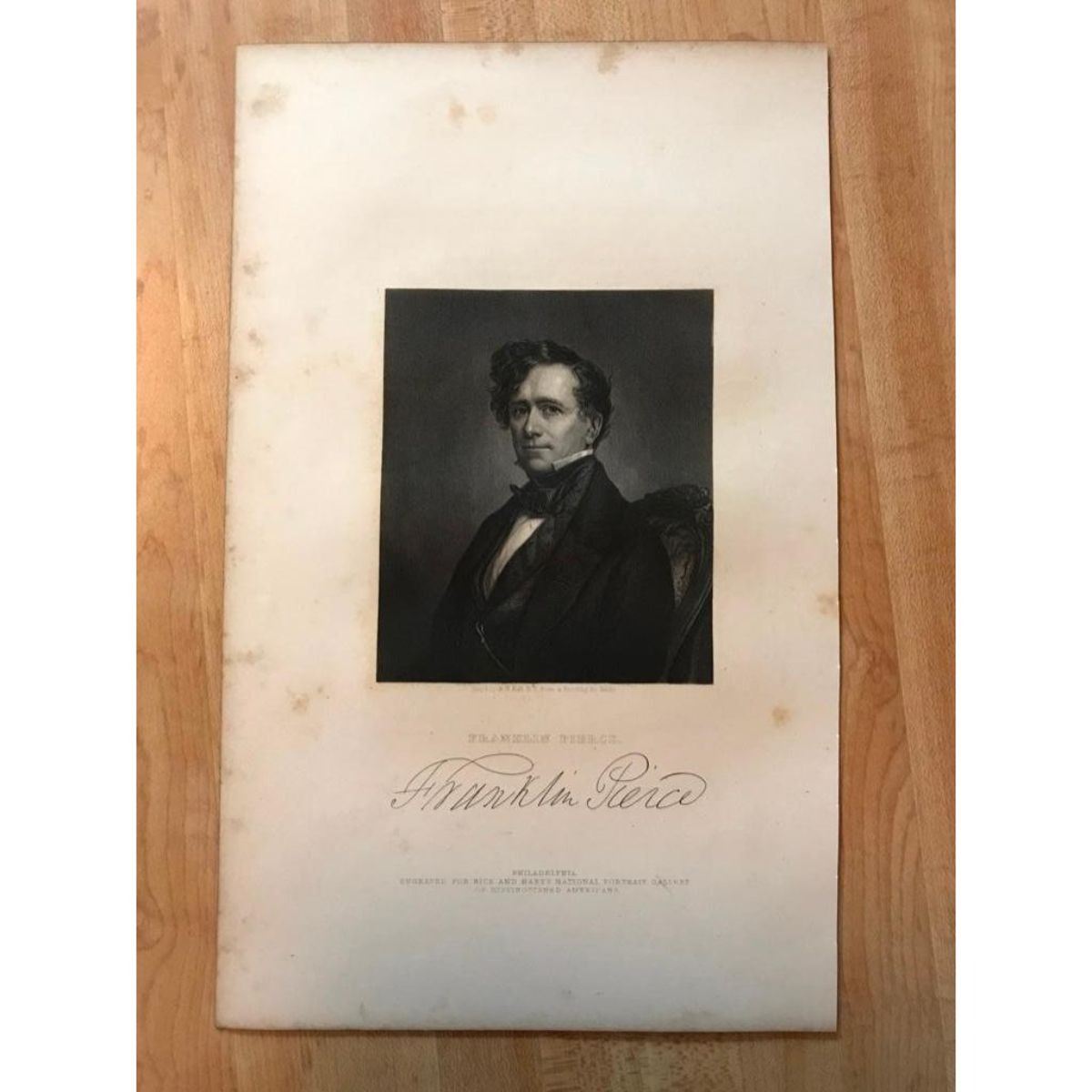 c.1859 steel engraving by H. B Hall New York, from a painting by Healy, the 14th President of The United States, Franklin Pierce. Engraved for Rice & Hart's National Portrait Gallery of Distinguished Americans. 6 1/2" X 10 1/2" book plate page with some scattered foxing.Â