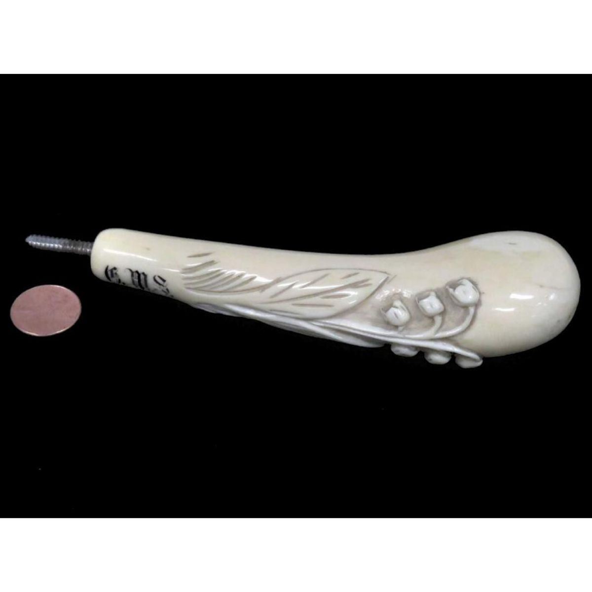 19thc Victorian, hand-carved bone handle for a parasol umbrella. Carving depicts lily of the valley flowers & monogram initials. 5 1/2"L. Â 9902-032518-LA-00154