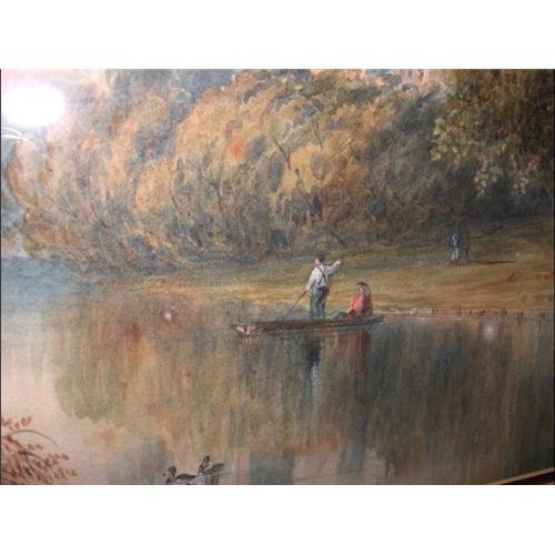 Beautifully excecuted Victorian watercolour depicting an idyllic scene of punters in summer on the River Isis in Oxfordshire England in the 19thCentury.Pencil inscription verso but unbelievably no signature.