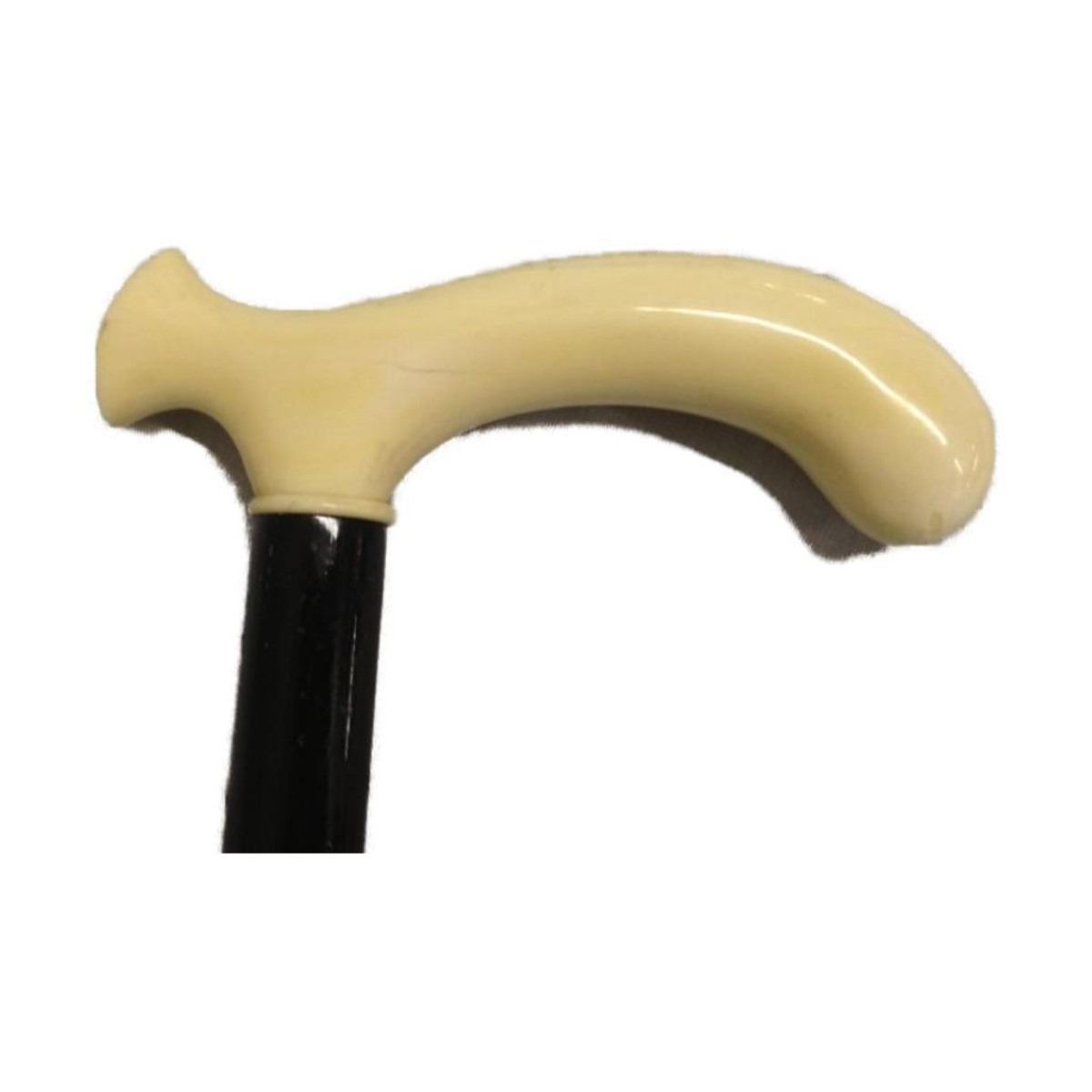 19th Century ( circa 1850's ) highly polished handle, ebonized wooden walking stick. 5" L handle. 32" overall L. 19th Century Meiji period ( 1868 - 1912 ) hand-carved sectional okimono figure of a peasant or farmer. Fabulous details & expressive face. Signed on the base. Yes, this is an antique imported before the turn of the 20th century. Original, not bone.