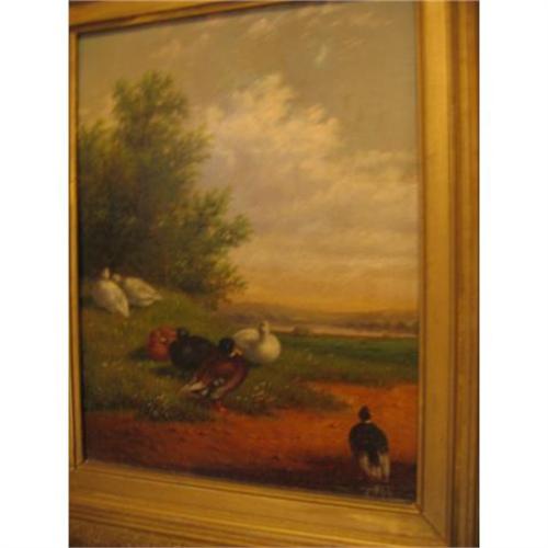 This pair of Farmland scenes are really special. They are painted over 150 years ago by an American artist Howard Hill. The frames are period. </em></td>