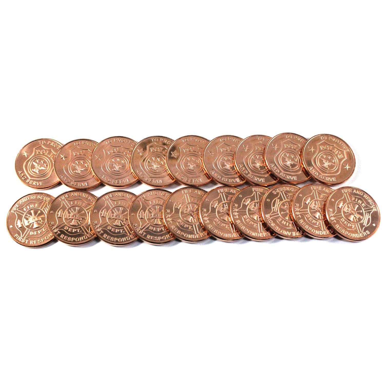 *19x 1oz .999 Fine Copper Rounds in Tube - 10x Fire Department & 9x Police. 19pcs (TAX Exempt)