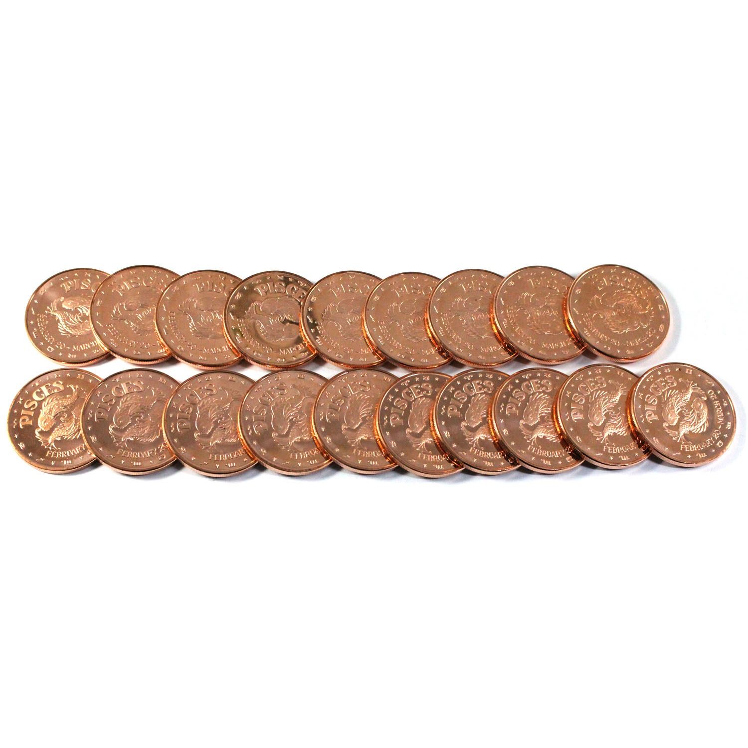 19x Pure Copper - 1oz .999 Pisces Fine Copper coins (Tax Exempt) 19pcs
