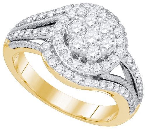 REF-119X9T ---- 1CT Diamond Flower 10KT Ring Yellow Gold - SKU: 82823