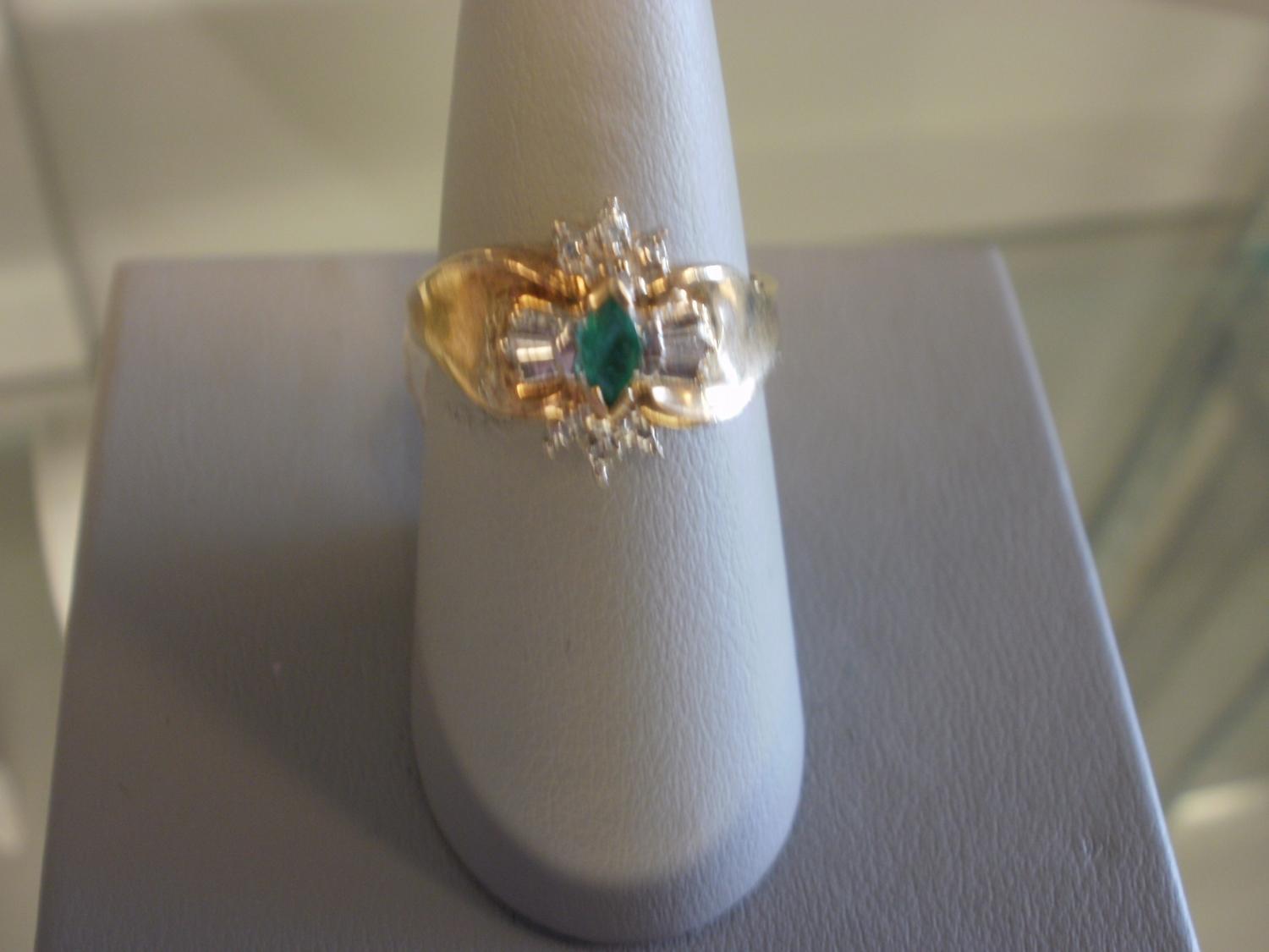 1CT Diamond and Emerald Ladies Ring, 14K gold
