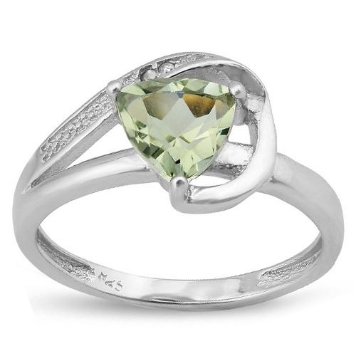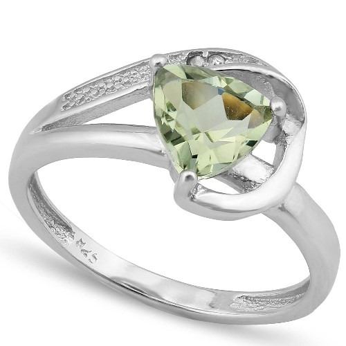 1CT Trillion cut Green Amethyst gemstone ring with 0.01ctw Genuine Diamond accents, set in Platinum over Sterling Silver for added shine. Size 7. 1.9g