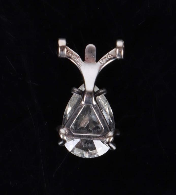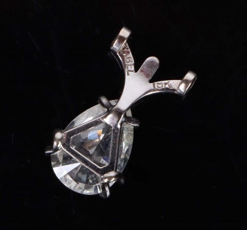 18k white gold pendant with 1ct pear cut diamond. Clarity SI-2 J-K color