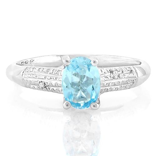 1CT Oval cut Sky Blue topaz ring with 0.01ctw diamond accents set in Platinum over Sterling Silver. Size 8. 2.1g
