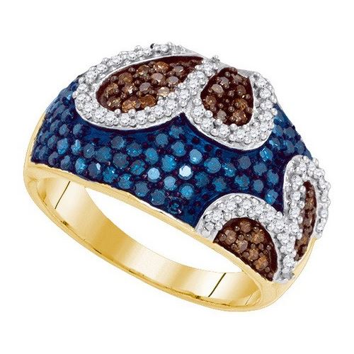 REF-63L9W ---- 1CTW White and Blue Diamond Micro-Pave 10KT Ring Yellow Gold - SKU: 87292