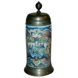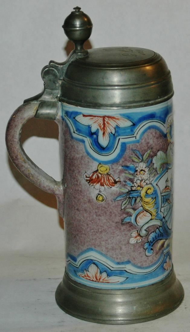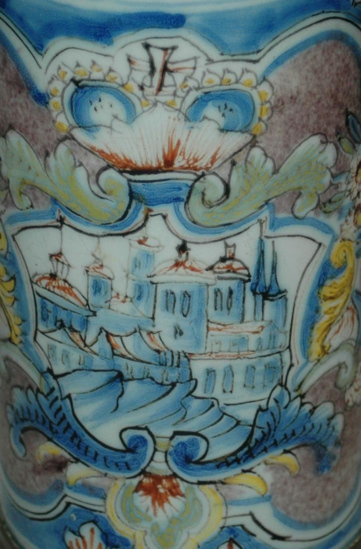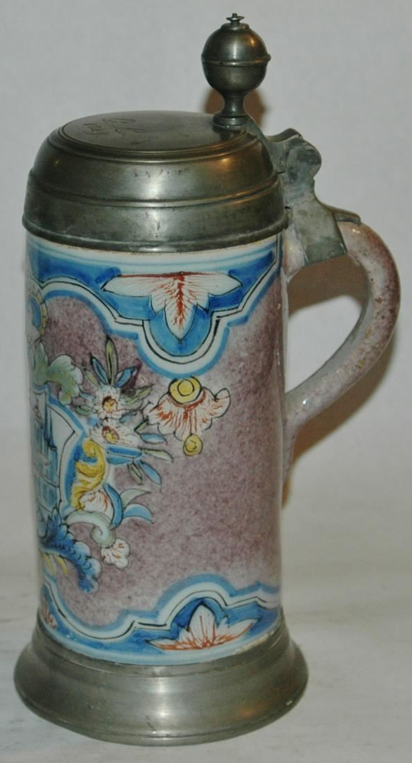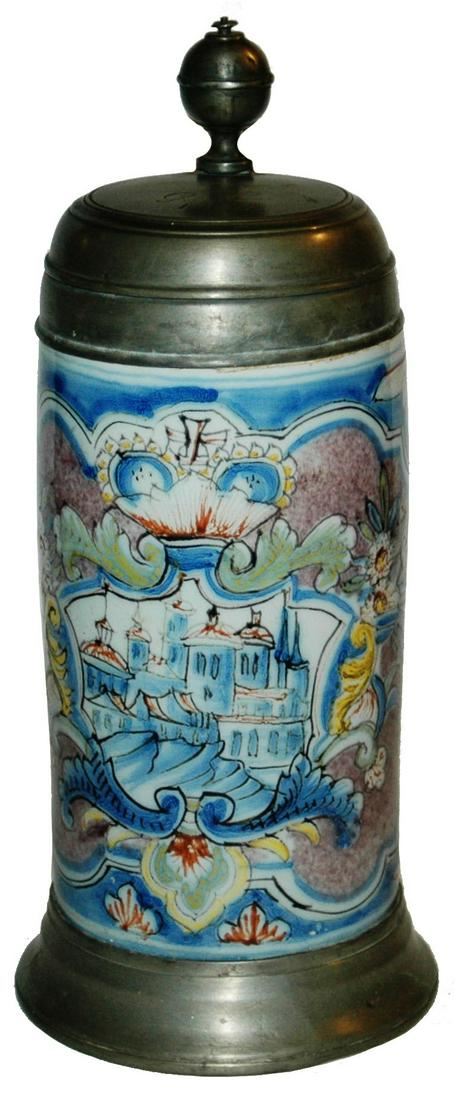 Faience Stein 1L Erfurt Factory. Buildings scene beneath crown. Circa 1780. Very good condition.