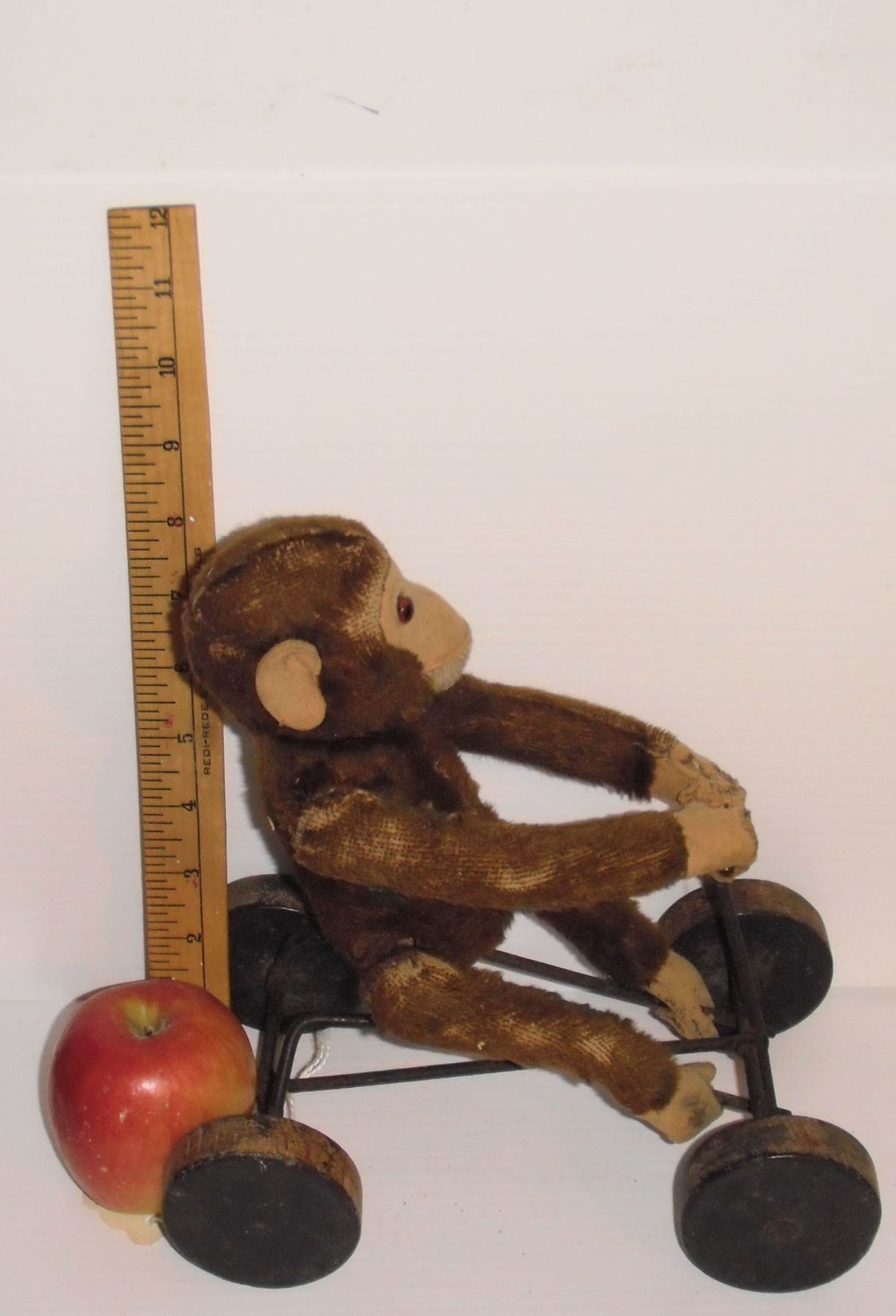 Antique as is toy monkey on four wood wheels likely Steiff 1912+ rare and for your collection