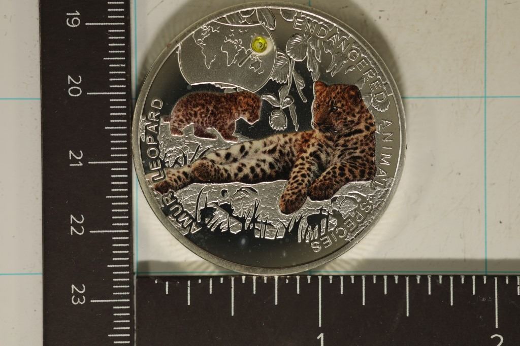ENDANGERED ANIMALS SPECIES COLLECTION "AMUR LEOPARD" COLORIZED WITH GEM ON ONE SIDE, IN HARD PLASTIC CAPSULE