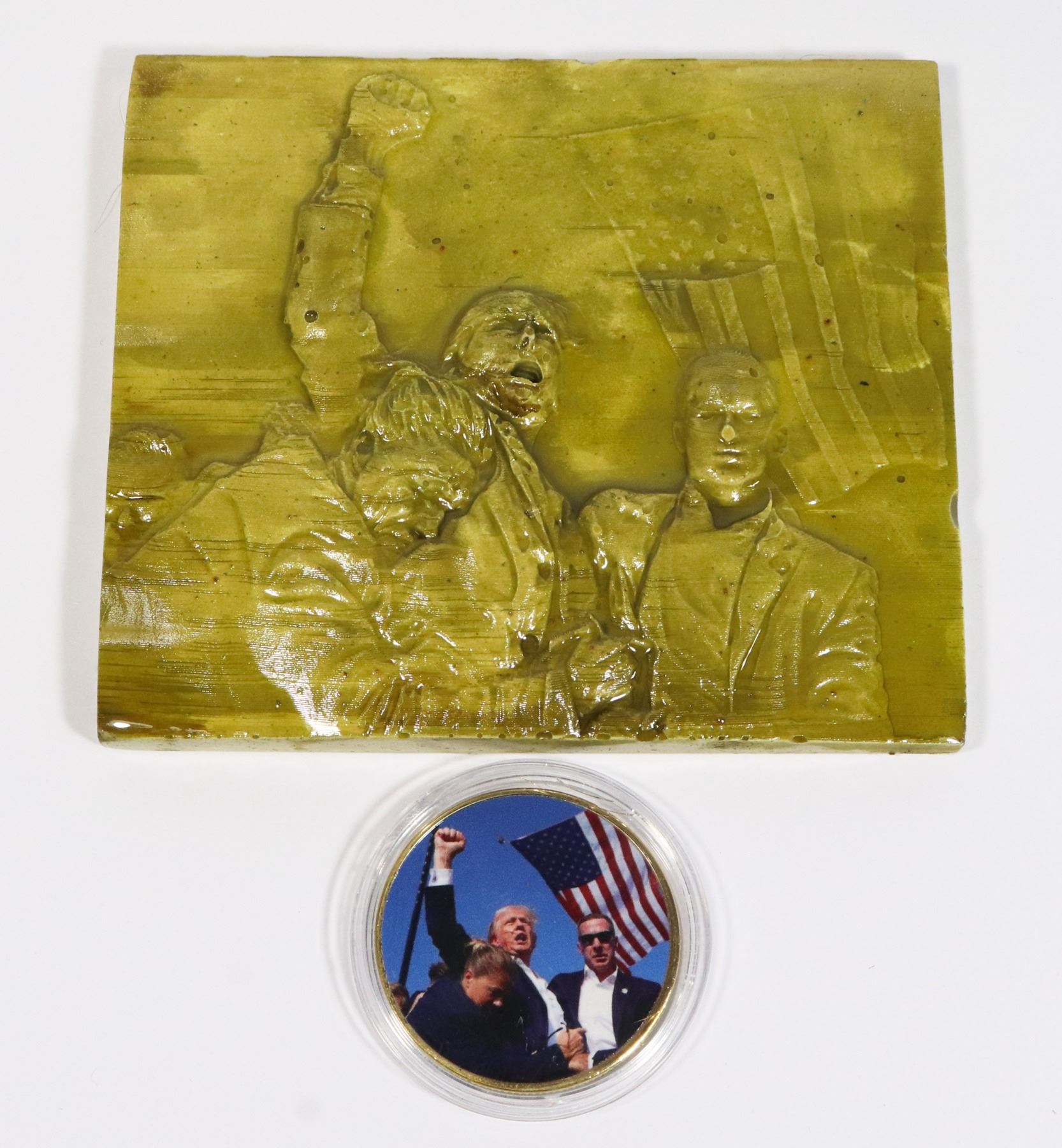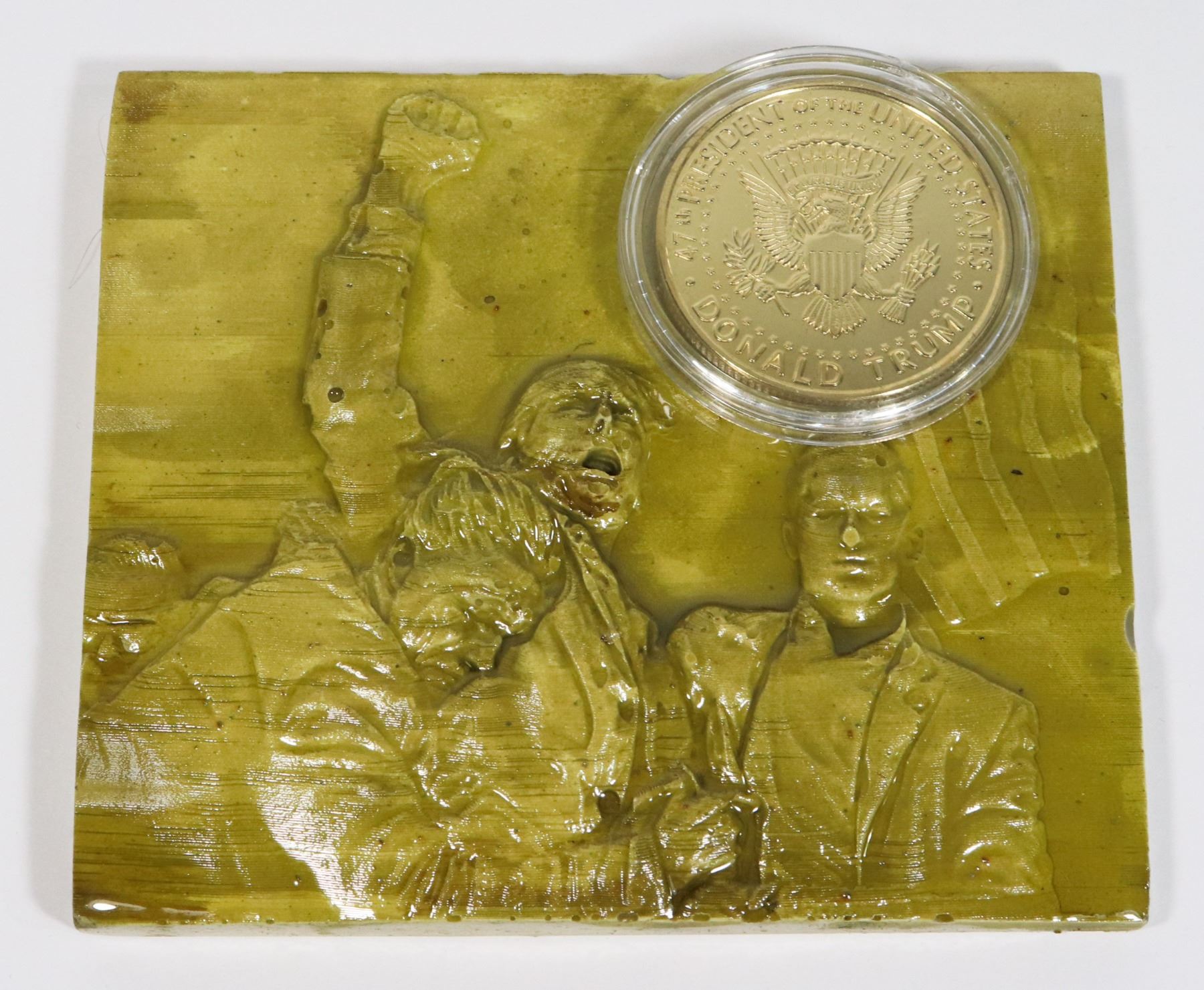 IN CAPSULE COMES WITH HOME MADE PLAQUE. CONSIGNOR BELIEVES ITEM TO BE HAUNTED AS WHEN HE CAST THE PIECE THERE WAS NO INTENTION TO HAVE WHAT LOOKS LIKE BLOOD COMING FROM TRUMPS EAR.