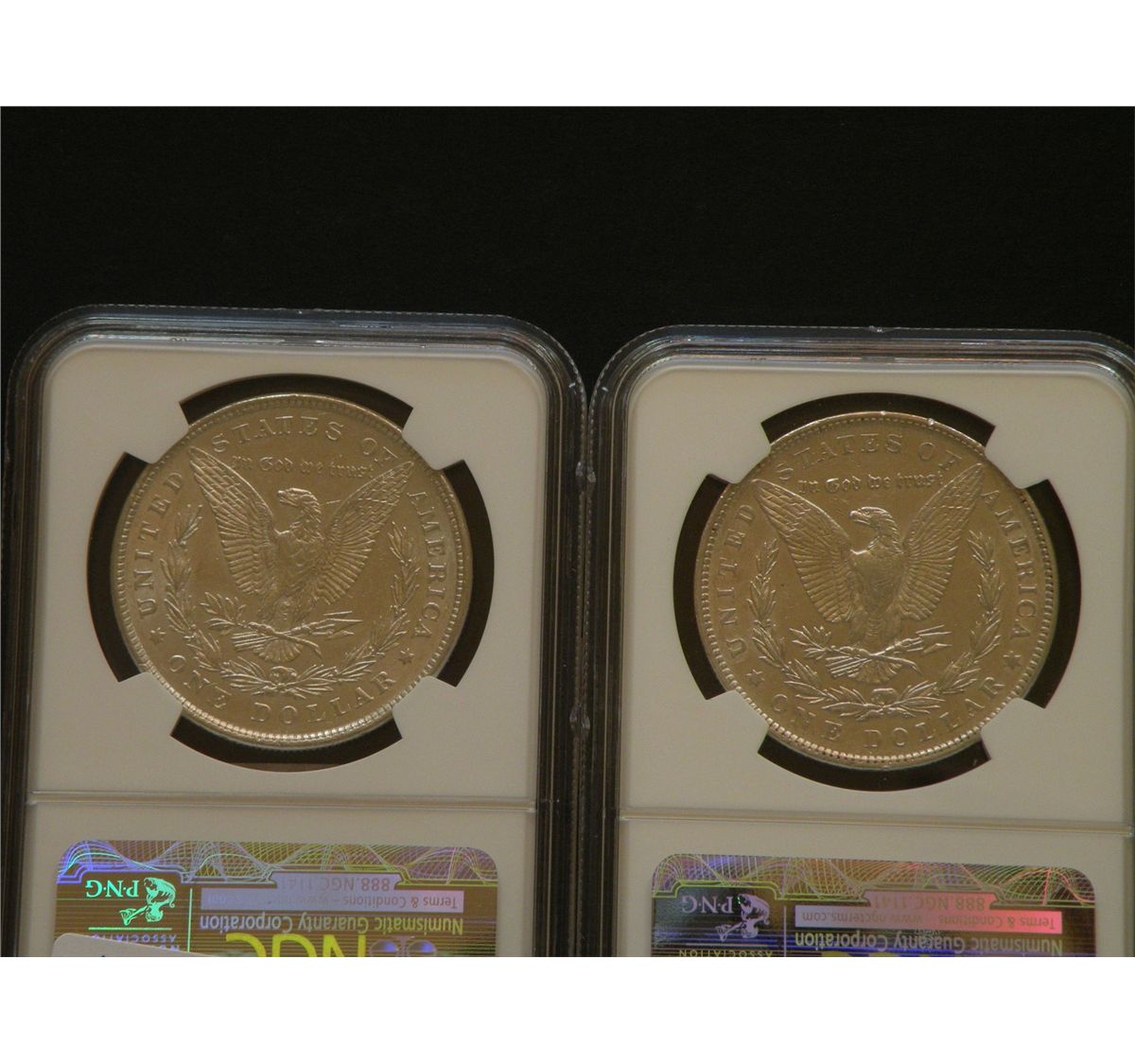 $1 Silver. 1878 8TF. NGC AU55; 1892 NGC AU53. Both are bright and frosty. A total of 2 coins. Est$140