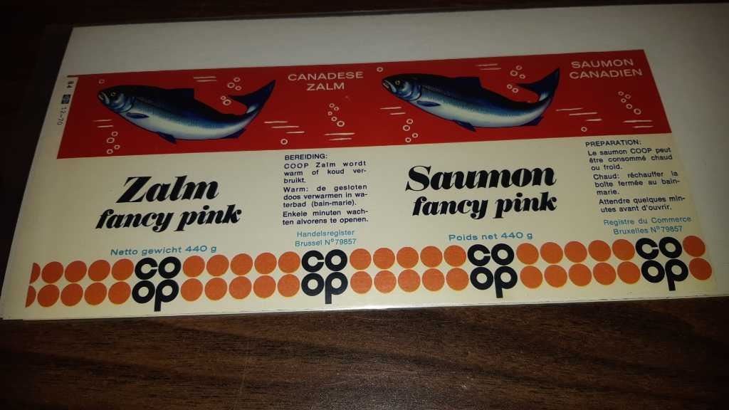 1VINTAGE ZALM FANCY PINK SALMON LABEL 9.75" X 4.75 PRODUCT OF CANADA BRUSSELS (560)