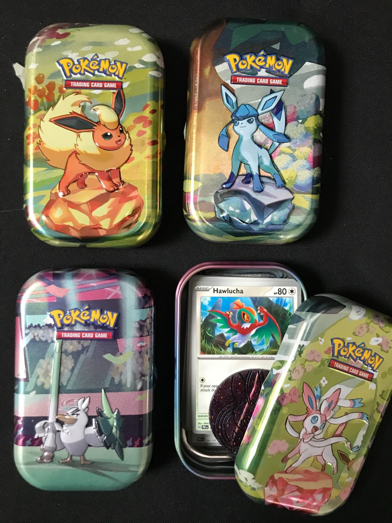 LOT OF 4 POKEMON TCG TIN BOXES WITH CARDS