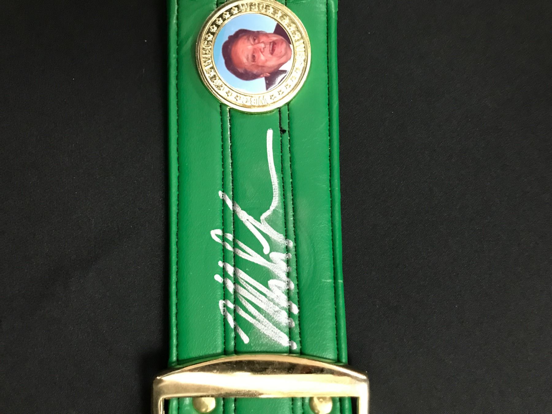 MIKE TYSON SIGNED REPLICA GREEN HEAVYWEIGHT BELT - WWOC COA