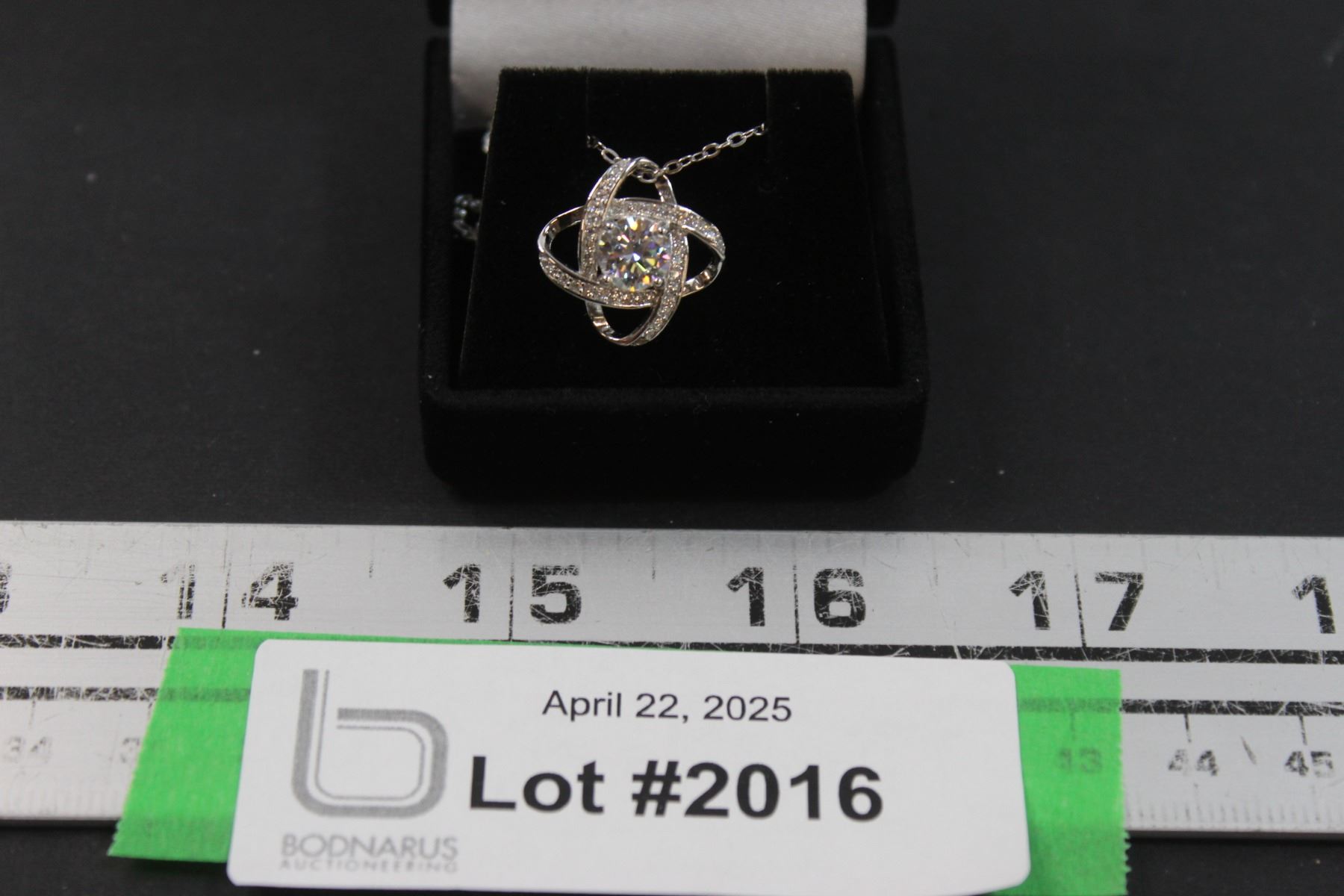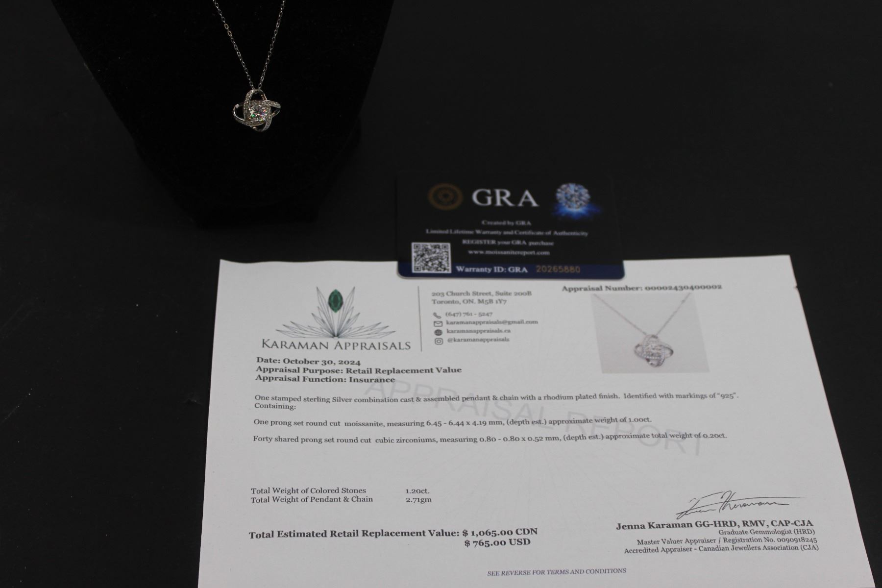 ^ 1ct. GRA Certified Round Brilliant Cut Moissanite Stone VVS D Color Set in Center of Dual Oval Shaped Halos w/(40) Round Brilliant Cut Cubic Zirconia Set in Sterling Silver Pendant