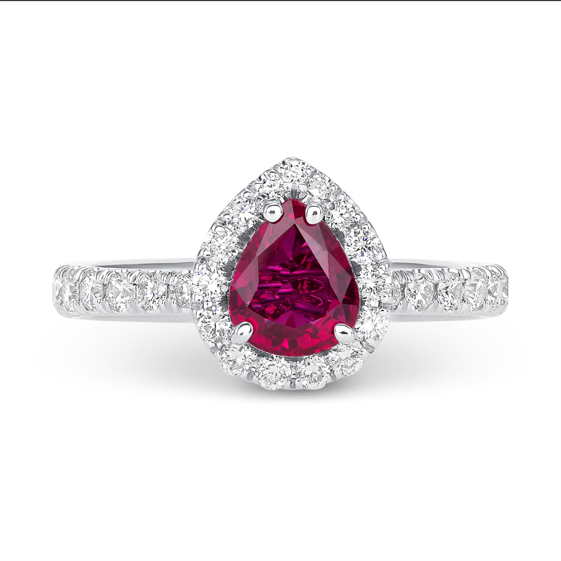 18K White Gold Ring 3.5gm / Diamond 0.61ct /NATURAL Ruby 1ct