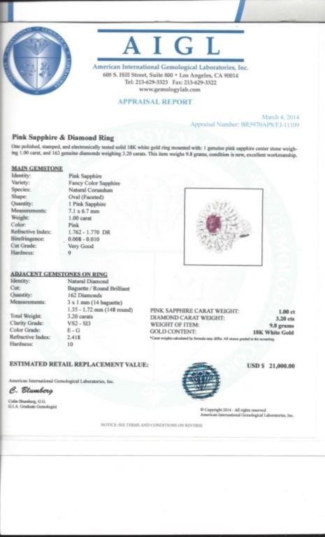 Regarding Appraised Jewelry and Loose Stones - Auctionfarm sends them out to a third party for Retail Replacement Value Appraisals, which are the most common. These types of evaluations are written for insurance needs. This would be the cost to replace the jewelry with an item of equal quality and kind, considered to be the current market price or the replacement value. This type of appraisal is done to protect you in the event of damage or loss of a valuable item. Our appraisals are conducted by independent 3rd Party appraisal firms that utilizes Certified GIA Gemologist. Appraisals should be used for verification of gemstone and/or metal weight, size, and grade only, not actual value. Appraisal value should be considered for insurance purposes only, not actual value, as price varies greatly from retail locations thru out the world. Items should not be purchased with the expectation to resell for appraisal price, or for profit.