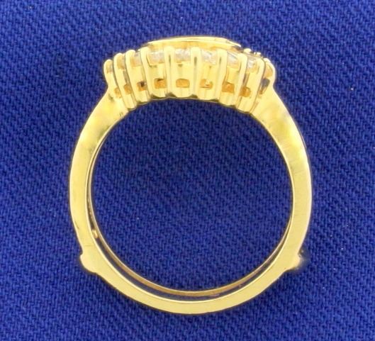 In 14k yellow gold. Contains twenty high quality .05ct baguette diamonds, VS clarity/H color. Size 6 1/2. 6.8g.