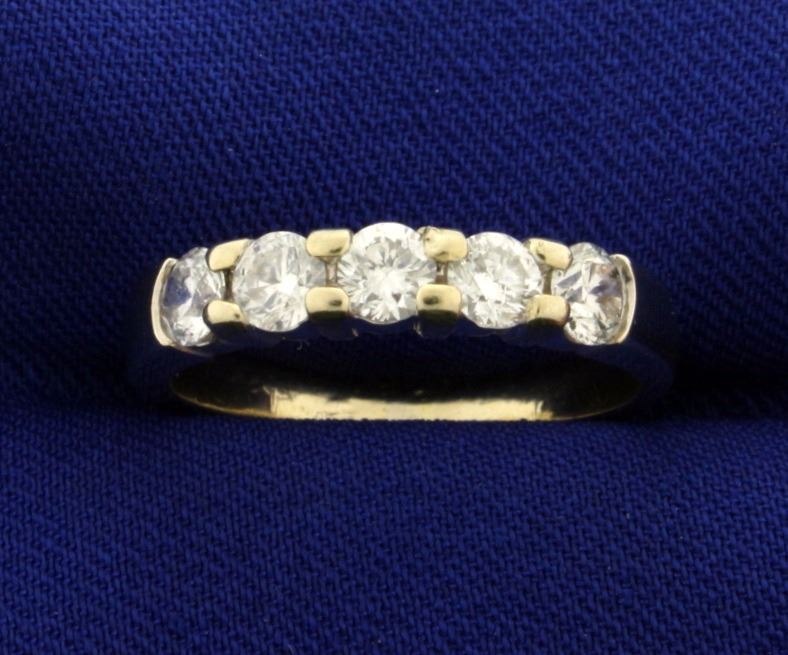 In 14k white gold, containing five .2ct high quality diamonds. SI clarity/F color. Size 7 1/2. 3.6g.