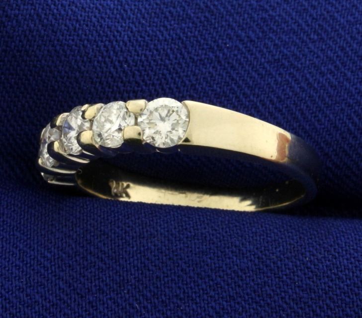 In 14k white gold, containing five .2ct high quality diamonds. SI clarity/F color. Size 7 1/2. 3.6g.